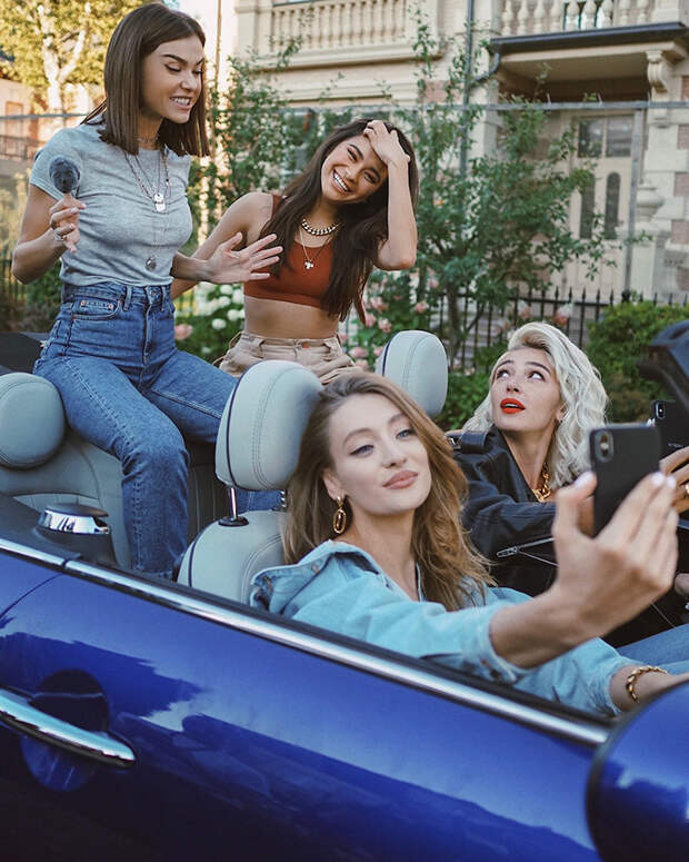Сегодня Лена Темникова представила клип на свой последни хит "Не модные". Вертикальный ролик в формате IGTV, полностью снят на iPhone самими героинями — кроме Лены в нем снялись Настя Ивлеева, Маша Миногарова и Диана Коркунова. Видео получилось не только живым, но и модным: на девушках можно заметить балаклаву Gucci, кроссовки Yeezy 500 и bling bling от Tiffany & Co.
