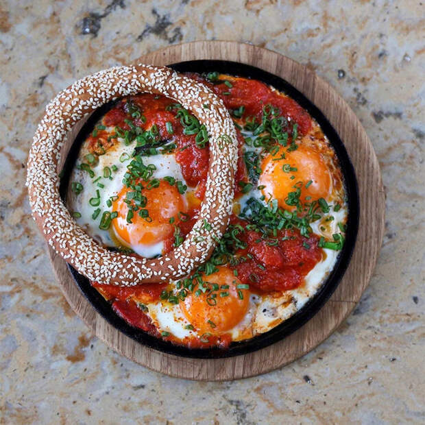 Любопытно, но в греческом «Eva», на мой вкус, лучшая шакшука в городе. Не слишком пряная, не острая. Для тех, кому нравится начинать свой день с максимально сбалансированного блюда, рекомендую боул с яйцом, креветками, авокадо, помидором, шпинатом и семечками. А тем, кто предпочитает утро посытнее, стоит обратить внимание на лепешку из печи с лососем, авокадо и шпинатом. Ребята также готовят отличные каши и идеальный кофе!