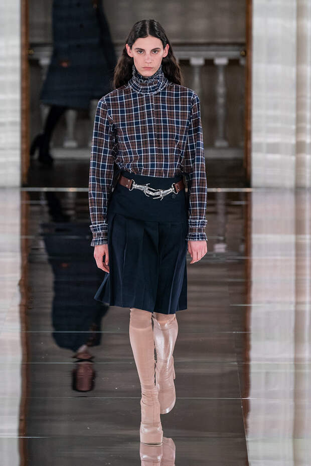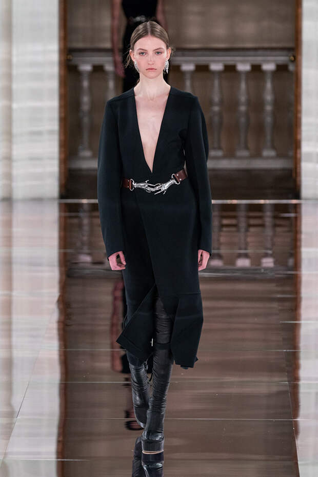 Отдельно стоит отметить, конечно, аксессуары — ремни с пряжками из посеребренных, тянущихся друг к другу рук. Кажется, что это просто обязано быть частью какой-то коллаборации с художником. Но информации об этом Бекхэм и ее команда пока не публиковали, так что ждем подробностей и новостей.