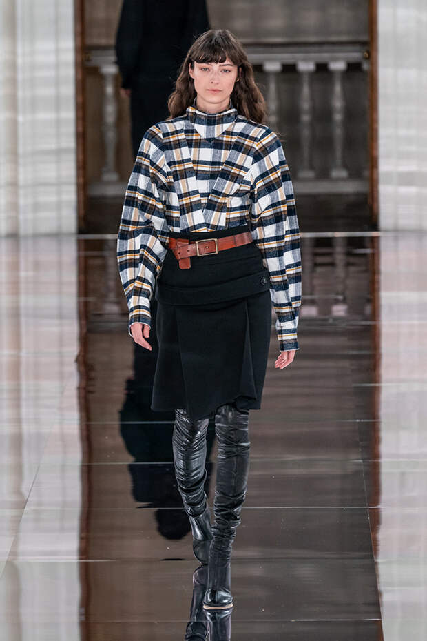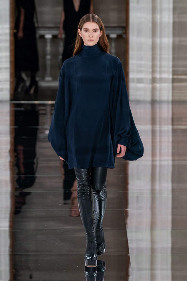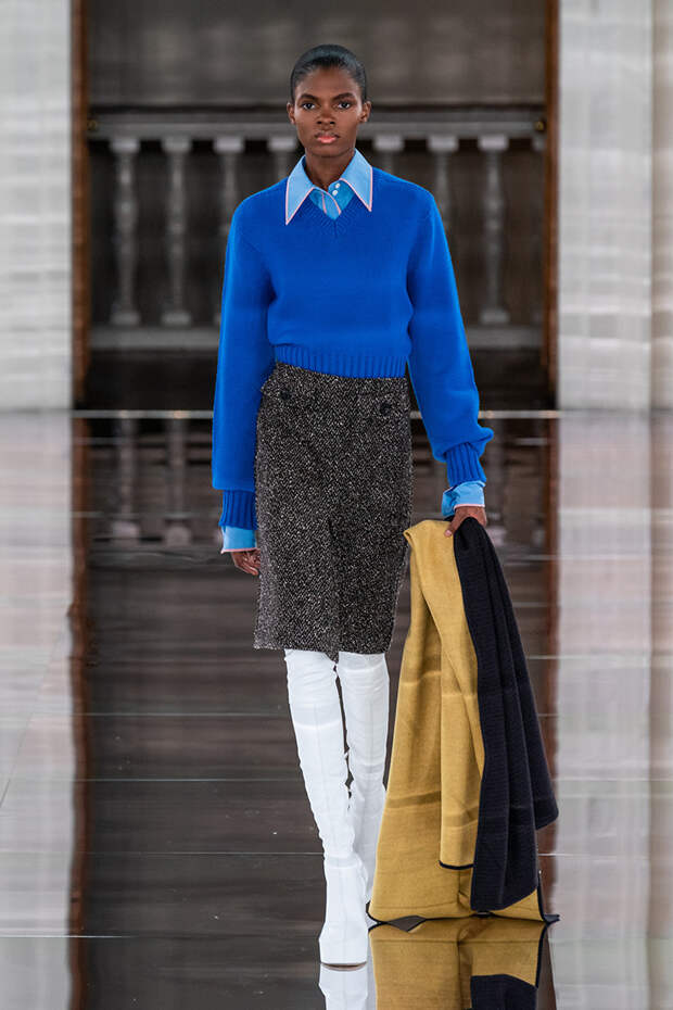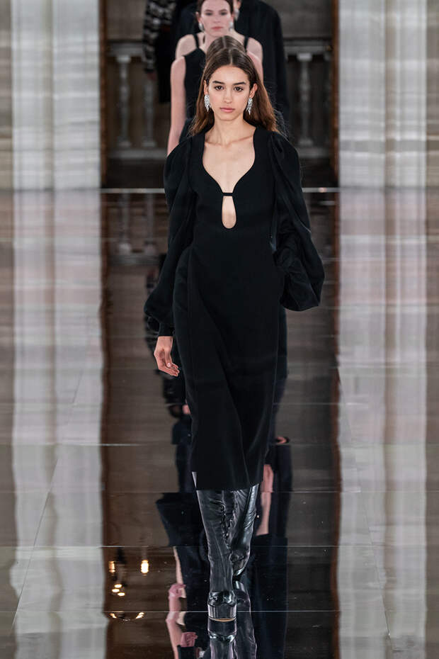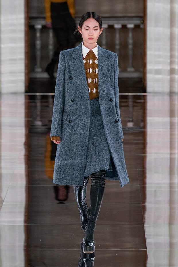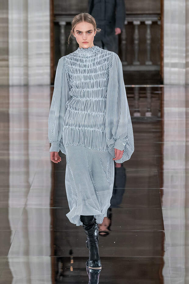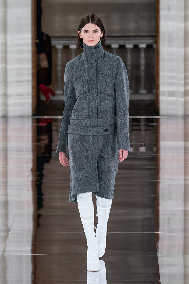 Главная составляющая этого образа — самодостаточность: желание жить и в том числе одеваться для себя, без оглядки на мужское мнение о "правильной" девушке, "правильной" женственности и "правильной" сексуальности. Главные признаки в крое — свобода и плавность, отход от буквального следования линиям тела и зачастую некоторая строгость. Как минимум отстраненность.Изменилось ли что-нибудь в новом сезоне, который она сама назвала временем обновления, смешения традиционных кодов дома со свежими веяниями? Не то чтобы. Дух у коллекции, по крайней мере, все тот же. Никуда не пропали в поиске нового и хорошо знакомые клиенткам, полюбившиеся вещи из числа старых: это и костюмы с юбками, и ослабленные платья-футляры, и слегка суровые пальто, и жакеты с подчеркнутыми плечами. Единственное, что бросается в глаза — это то, что на этот раз Бекхэм позволила себе больше объема, не сдерживая себя строгой геометрией в конструировании рукавов. Благодаря этому в силуэтах платьев появилось что-то из моды прошлого, времен, скажем, викторианских — и этого придало коллекции того самого воздуха. А еще стали короче брюки — теперь они не закрывают пятку обуви, а открывают щиколотки, едва длиной не дотягивая до кюлот.