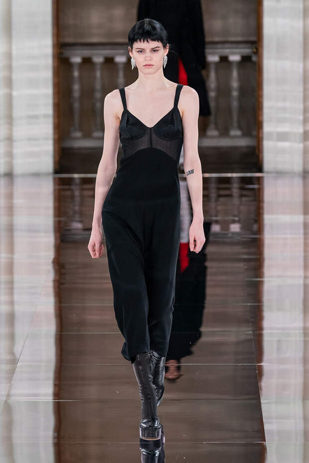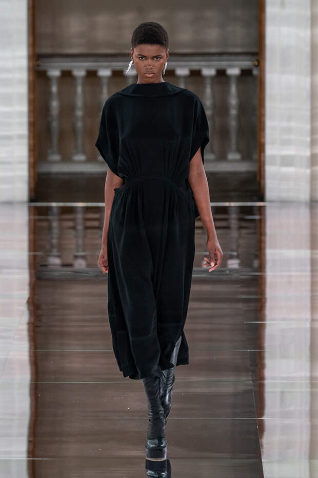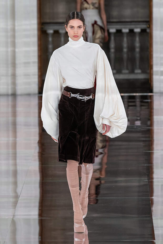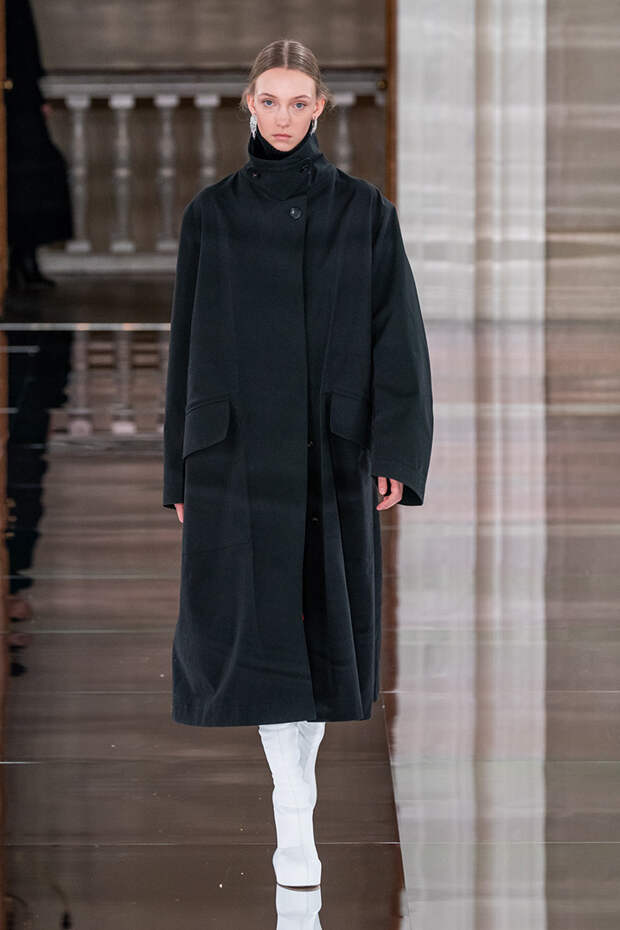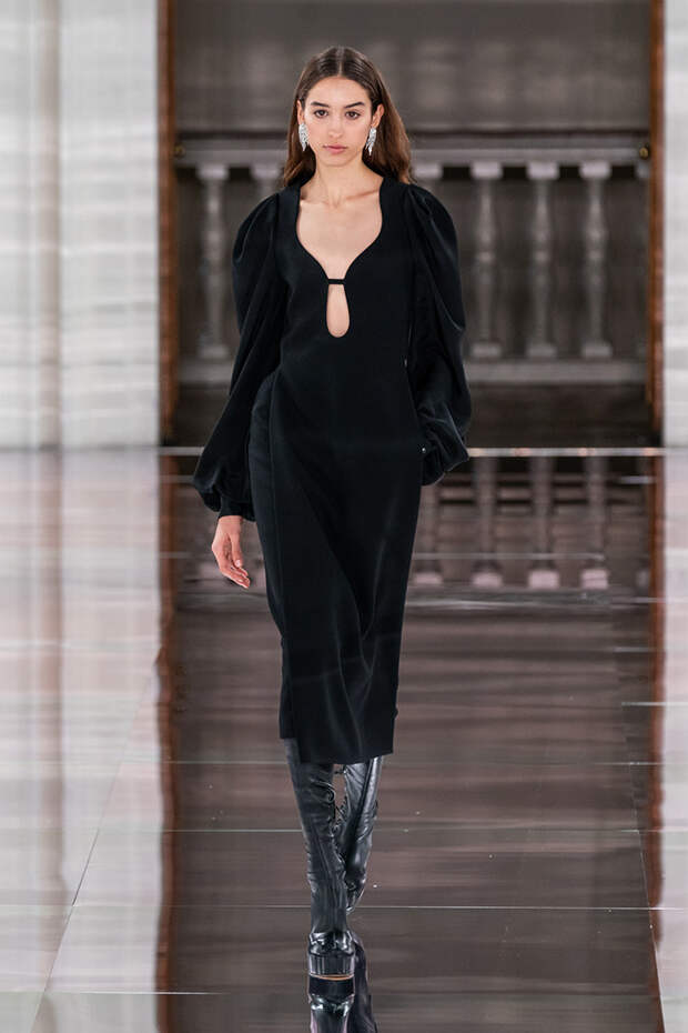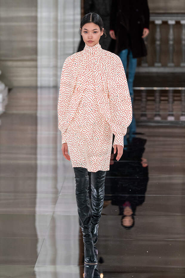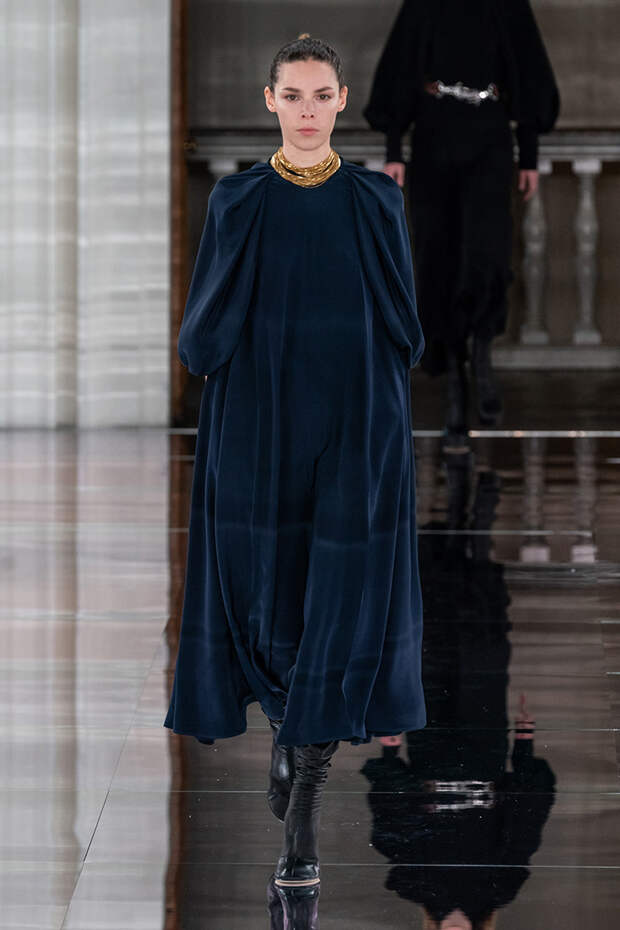 Главная составляющая этого образа — самодостаточность: желание жить и в том числе одеваться для себя, без оглядки на мужское мнение о "правильной" девушке, "правильной" женственности и "правильной" сексуальности. Главные признаки в крое — свобода и плавность, отход от буквального следования линиям тела и зачастую некоторая строгость. Как минимум отстраненность.Изменилось ли что-нибудь в новом сезоне, который она сама назвала временем обновления, смешения традиционных кодов дома со свежими веяниями? Не то чтобы. Дух у коллекции, по крайней мере, все тот же. Никуда не пропали в поиске нового и хорошо знакомые клиенткам, полюбившиеся вещи из числа старых: это и костюмы с юбками, и ослабленные платья-футляры, и слегка суровые пальто, и жакеты с подчеркнутыми плечами. Единственное, что бросается в глаза — это то, что на этот раз Бекхэм позволила себе больше объема, не сдерживая себя строгой геометрией в конструировании рукавов. Благодаря этому в силуэтах платьев появилось что-то из моды прошлого, времен, скажем, викторианских — и этого придало коллекции того самого воздуха. А еще стали короче брюки — теперь они не закрывают пятку обуви, а открывают щиколотки, едва длиной не дотягивая до кюлот.