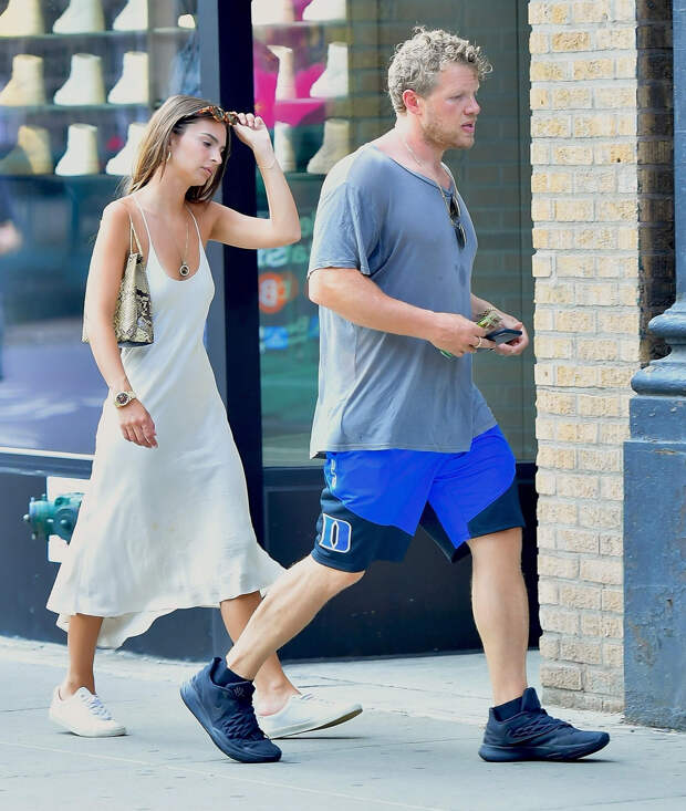 Пока Москва встречает август пасмурной погодой и прохладой, в Нью-Йорке стоит летний зной. Но Эмили Ратаковски знает, как пережить жаркий день в каменных джунглях. Для прогулки с супругом Себастьяном Бир-МакКлардом модель выбрала белоснежное платье-комбинацию с асимметричным подолом в миди-длине, предпочитая носить его без нижнего белья.