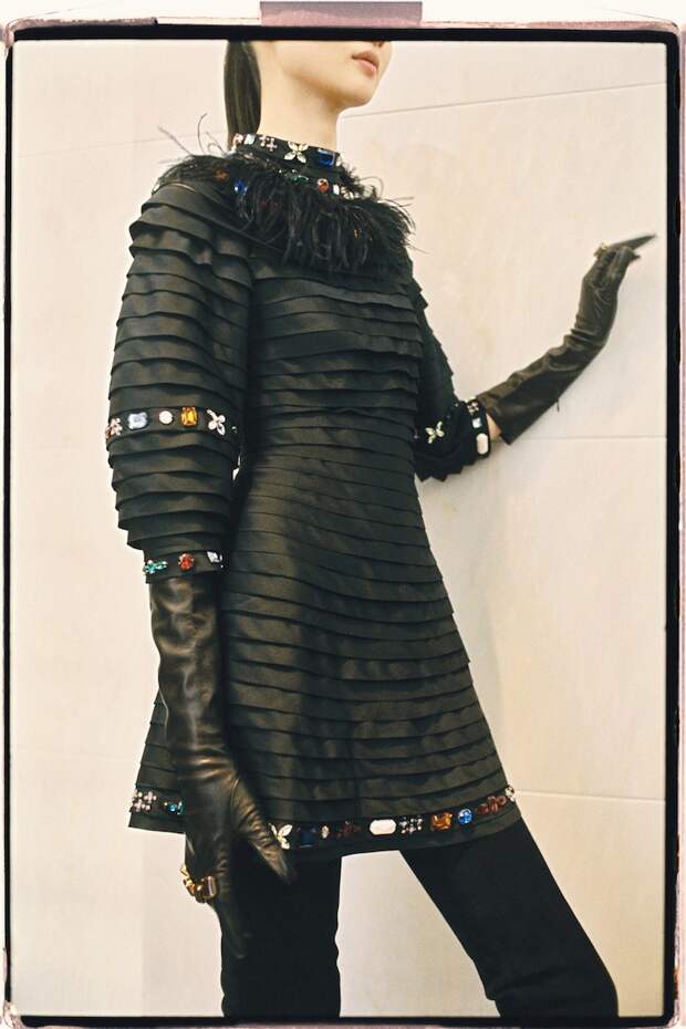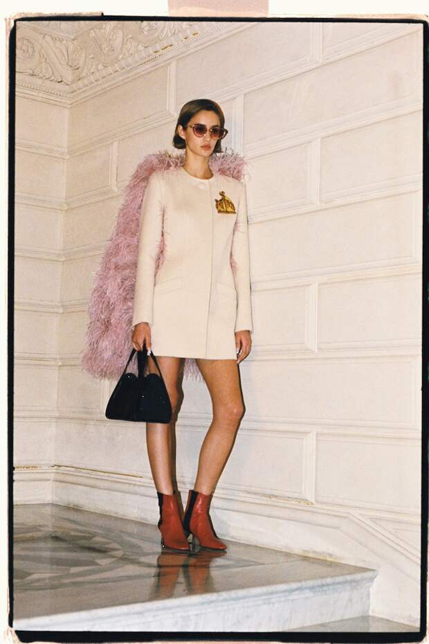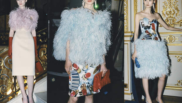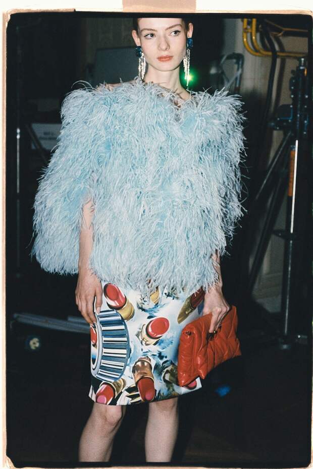 Перья, кристаллы, огромные банты, леопардовый принт: в коллекции есть весь арсенал самого необходимого для похода на шумную вечеринку. При этом не обошлось и без грамотной работы с архивами: на нескольких вещах появилось культовое лого Lanvin в качестве декоративного элемента, во многих платьях были процитированы знаковые винтажные силуэты, включая знаменитое Robe du style, а несколько раз повторившийся принт с футлярами губной помады отсылал к линии макияжа Lanvin, которую запускала еще сама легендарная Жанна Ланвен (кстати, в прошлой осенней коллекции были сумочки в форме этих самых футляров).