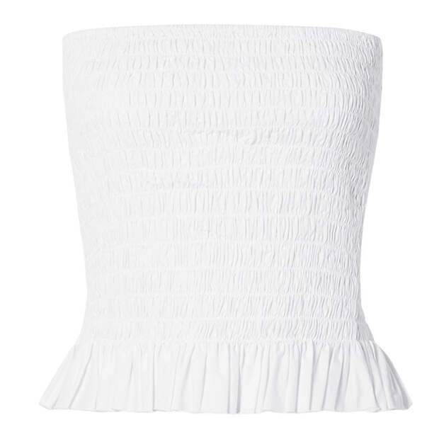 Даже будущая первая леди Мелания Трамп, не подозревавшая, что ее гардероб будет когда-то состоять из платьев-футляров, не смогла проигнорировать тренд на облегающий топ без бретелек. А Сальма Хайек, Кэмерон Диас, Дженнифер Энистон не преминули выйти в них на красную дорожку. Причин несколько - такой фасон выгодно подчеркнет бюст (даже не самый выдающийся), ключицы и плечи. К тому же сочетается сей раритет с чем угодно - миди-юбкой или широкими брюками. И последний аргумент в пользу покупки - "труба" подойдет не только для летних вечеринок - накиньте сверху пиджак и оправляйтесь в офис, предвкушая, что вечером вы его скинете и мысленно вернетесь в нулевые.
