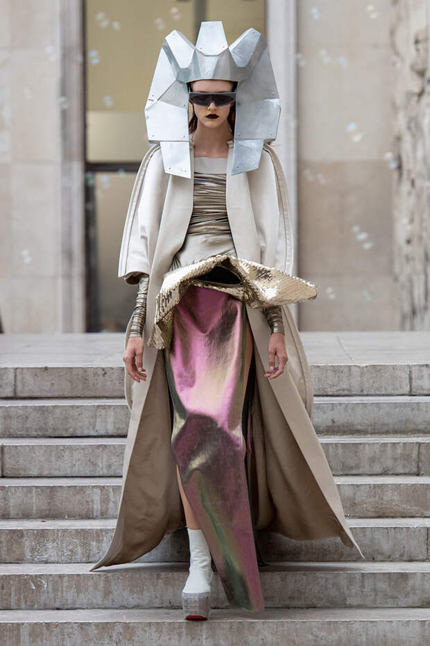 На фоне всех разговоров о будущем Земли, экологических катастрофах, политических провалах и вспышках насилия смотреть в будущее с оптимизмом становится все сложнее. Неудивительно, что все коллекции этого весенне-летнего сезона, так или иначе посвященные будущему, были одна другой мрачней. Тем удивительней на их фоне выглядело шоу Rick Owens — на ту же тему, но полное оптимизма.
