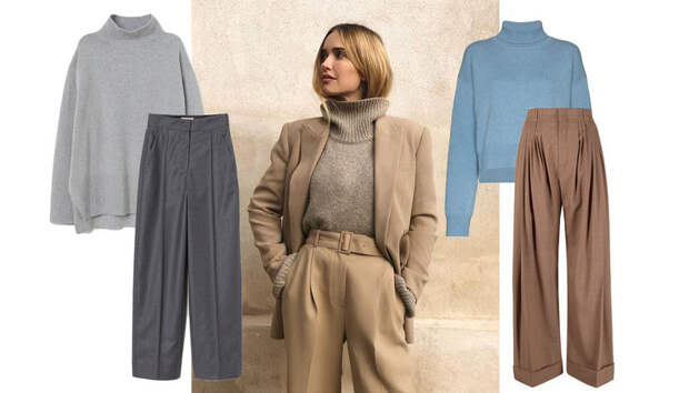 Вопрос о том, как стильно утеплиться, будет волновать нас еще как минимум пару месяцев — а значит, прямо сейчас есть смысл подбирать для этого новые опции. Привычные варианты за последнее время успели порядком надоесть — поэтому настал момент для чего-то нового. Если в какой-то момент вы поняли, что уже которую неделю подряд носите однотипные трикотажные джемперы с джинсами, то можно попробовать несколько другое комбо — водолазку и широкие брюки.