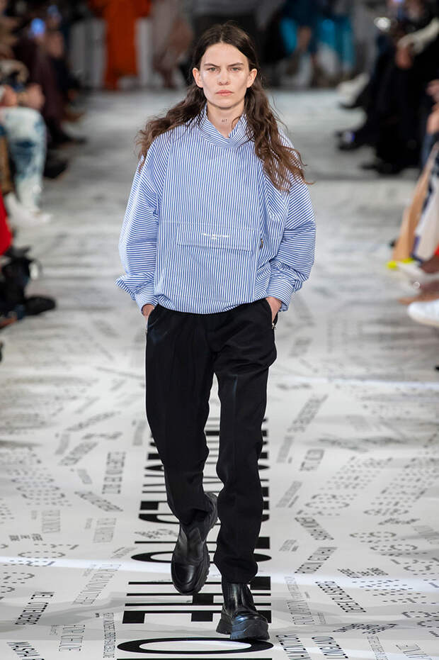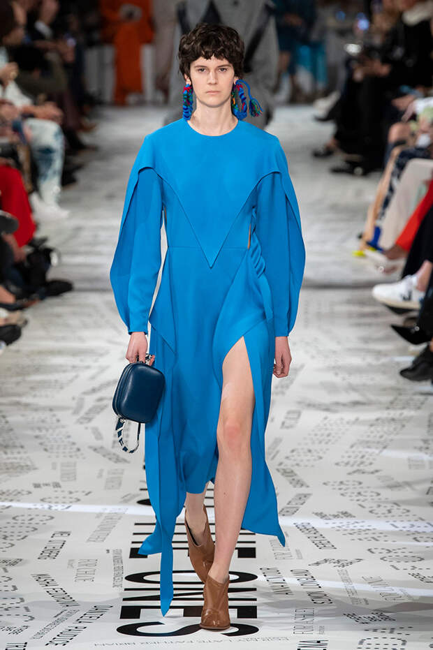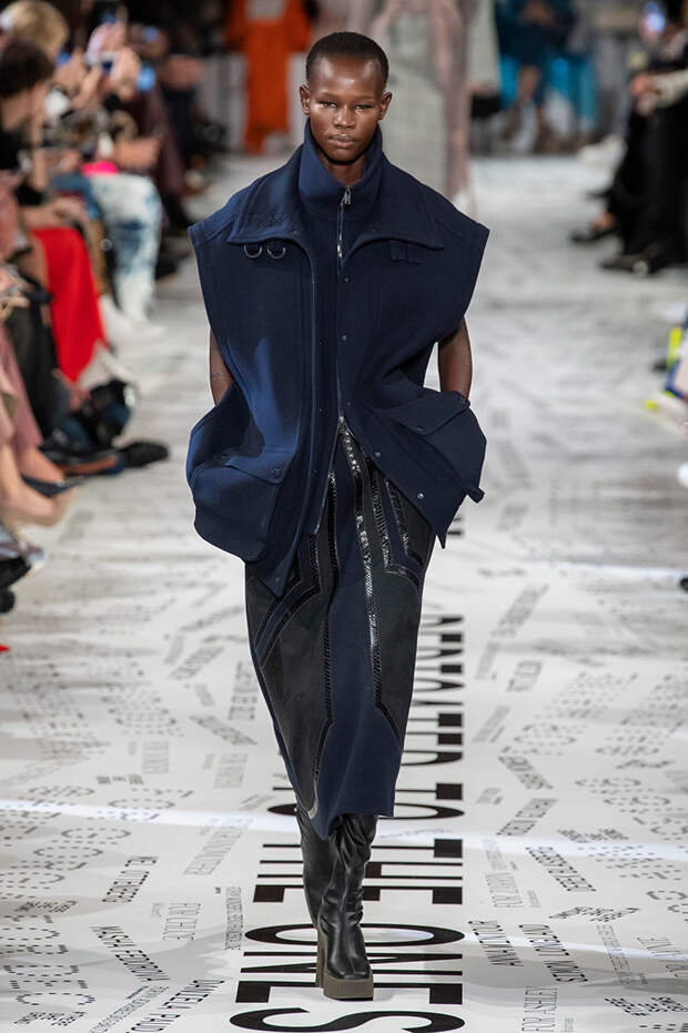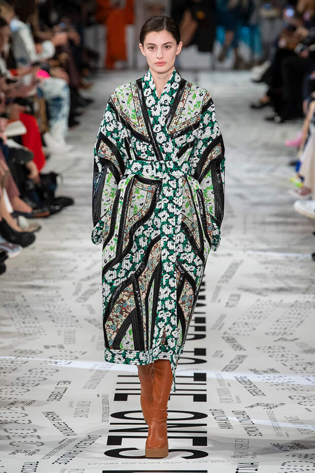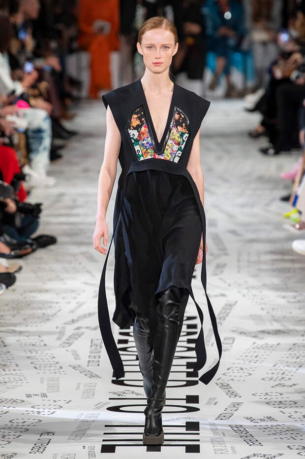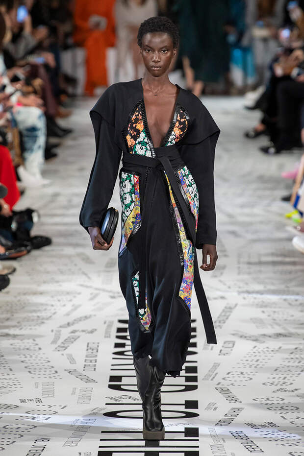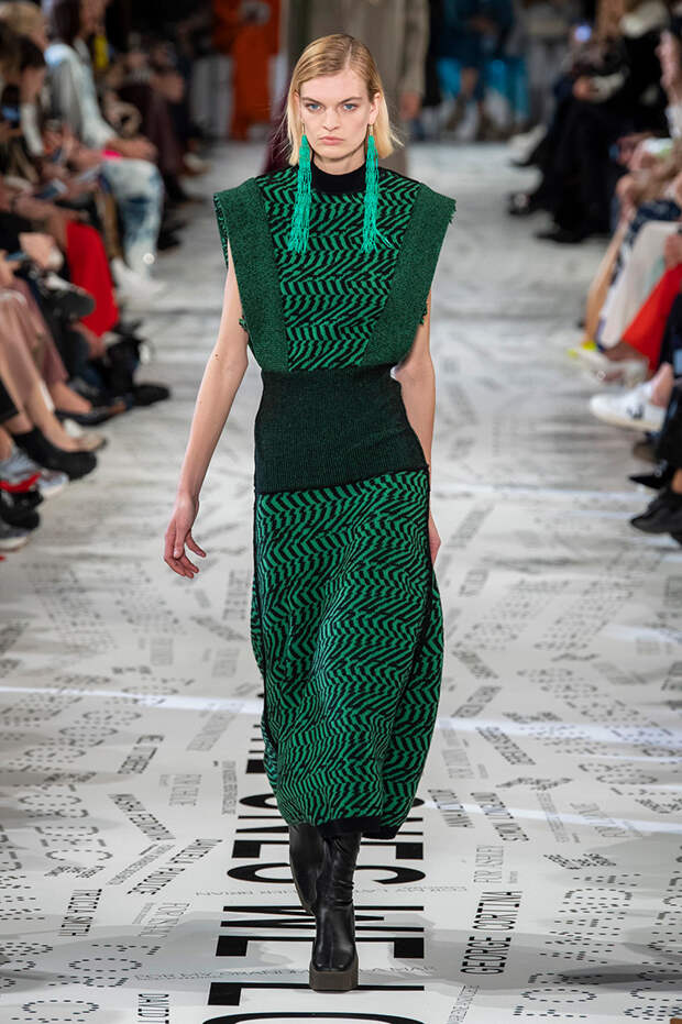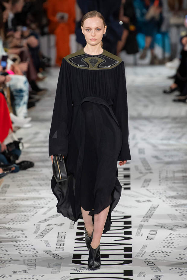 Без гипертрофированно широких плеч не обошлась, кажется, ни одна коллекция Парижской недели моды. Не осталась в стороне и Стелла Маккартни — и пальто, и платья, и жилеты вышли на этот раз генеральскими. Причем в прямом смысле: стиль милитари тоже стал одной из основных линий сезона. Впрочем, сочетание жестких линий и брутальных силуэтов с природной плавностью — основа стилистики Дома в целом, так что сюрпризом их появление точно не стало.