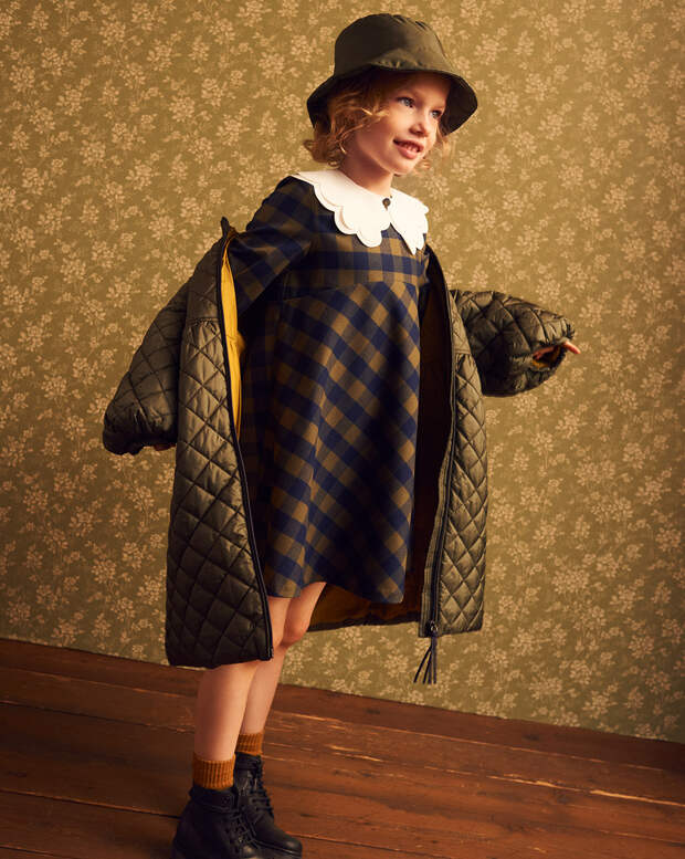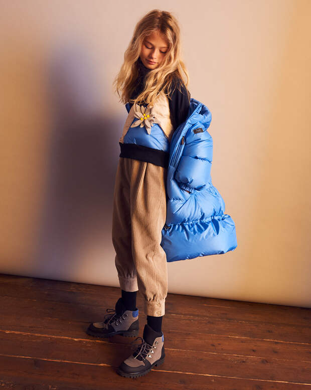Не бывает плохой погоды — только плохой гардероб. Новая коллекция Il Gufo позволит родителям не беспокоится о том, что их дети находятся в тепле и комфорте, а детям даст возможность экспериментировать с образами каждый день. Палитра сезона у бренда навеяна природой Доломитовых Альп: здесь и приглушенные оттенки зеленого, и небесно-голубой, и цвета осеннего леса и заснеженных вершин. Наш любимый комплект — юбка и пончо из стеганого нейлона плюс шерстяная водолазка горчичного оттенка. Тот случай, когда можно не скрывать зависти маленьким модникам.