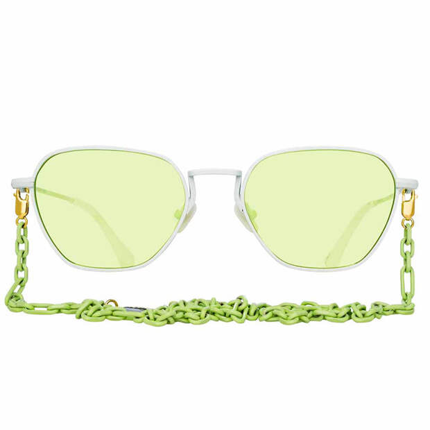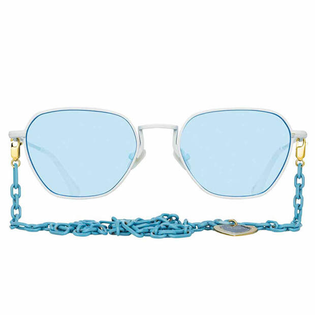 Самый простой способ посмотреть на мир по-новому – надеть солнцезащитные очки с цветными линзами. Найти такие можно в коллаборации двух небезызвестных брендов Linda Farrow x Alessandra Rich. Звезда коллекции - оправа трапециевидной формы, к которой прилагается съемная цепочка для носки на шее - самостоятельный аксессуар, который отлично впишется в яркие летние образы.