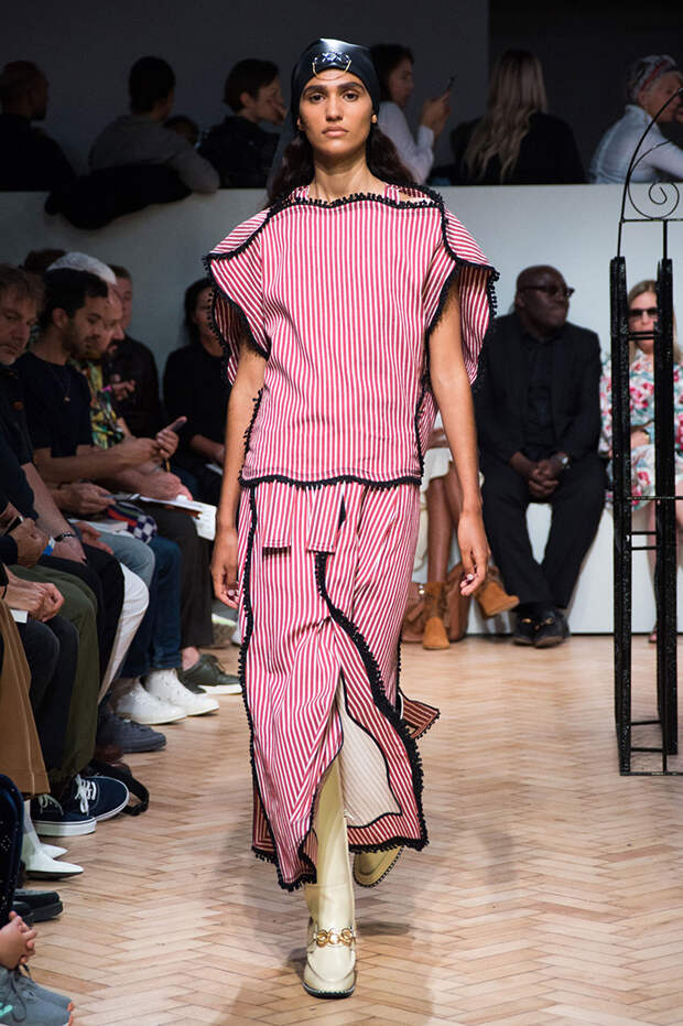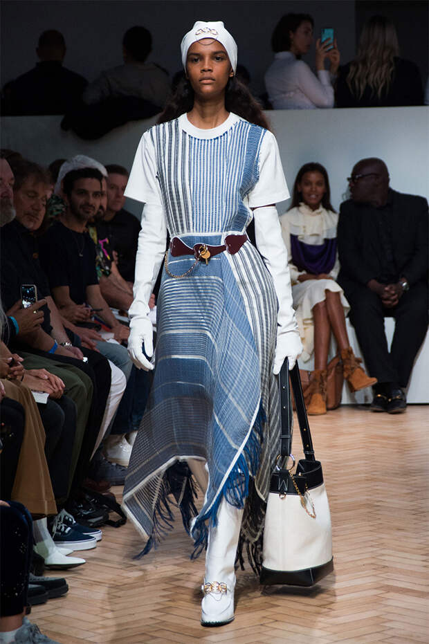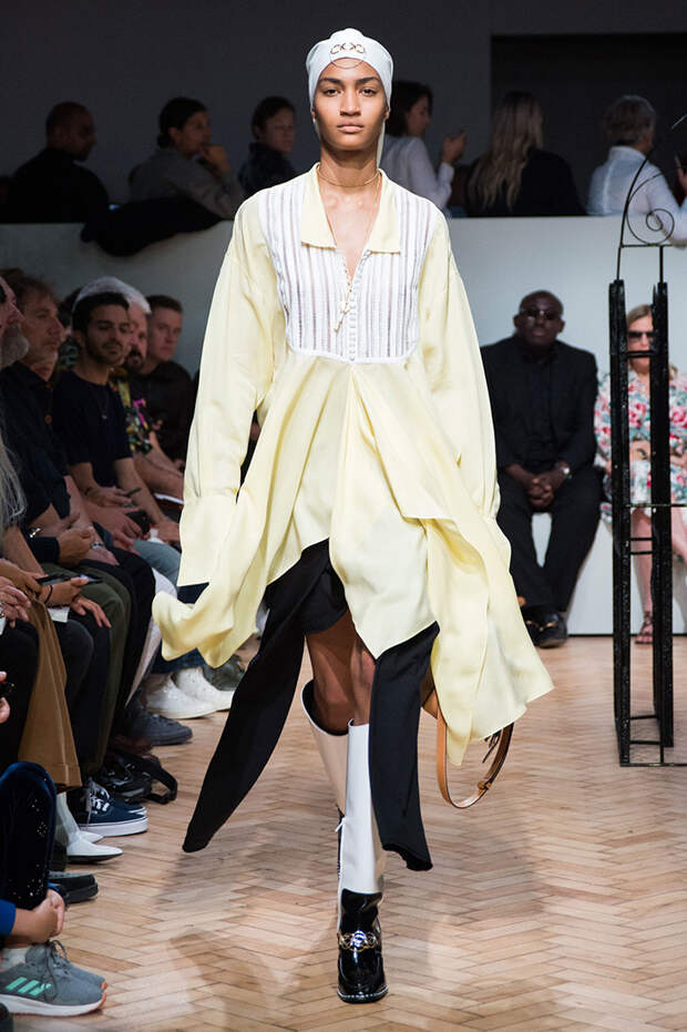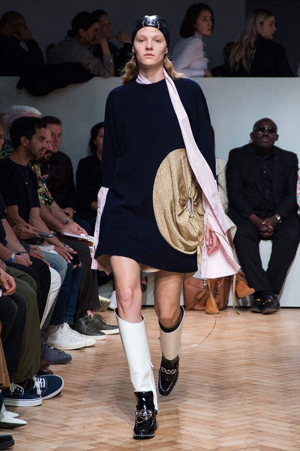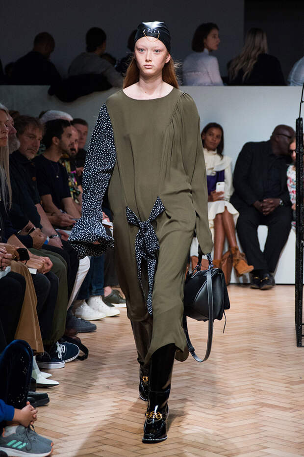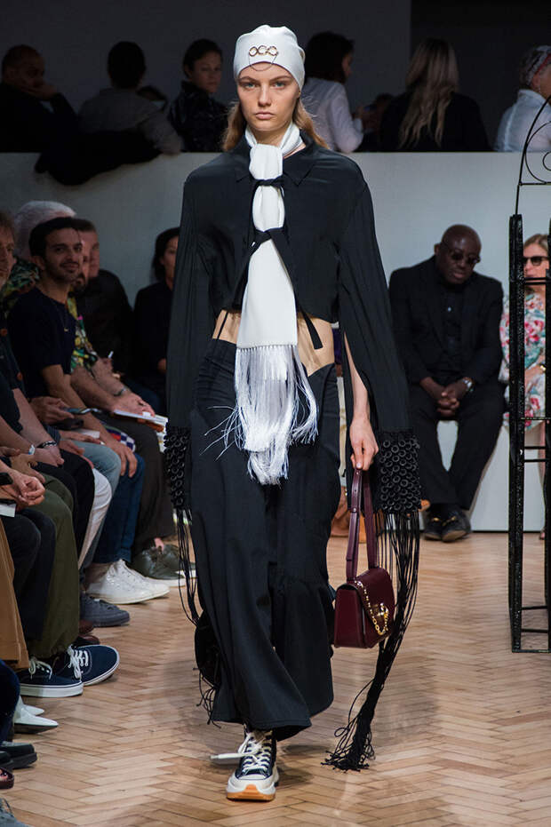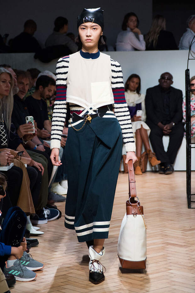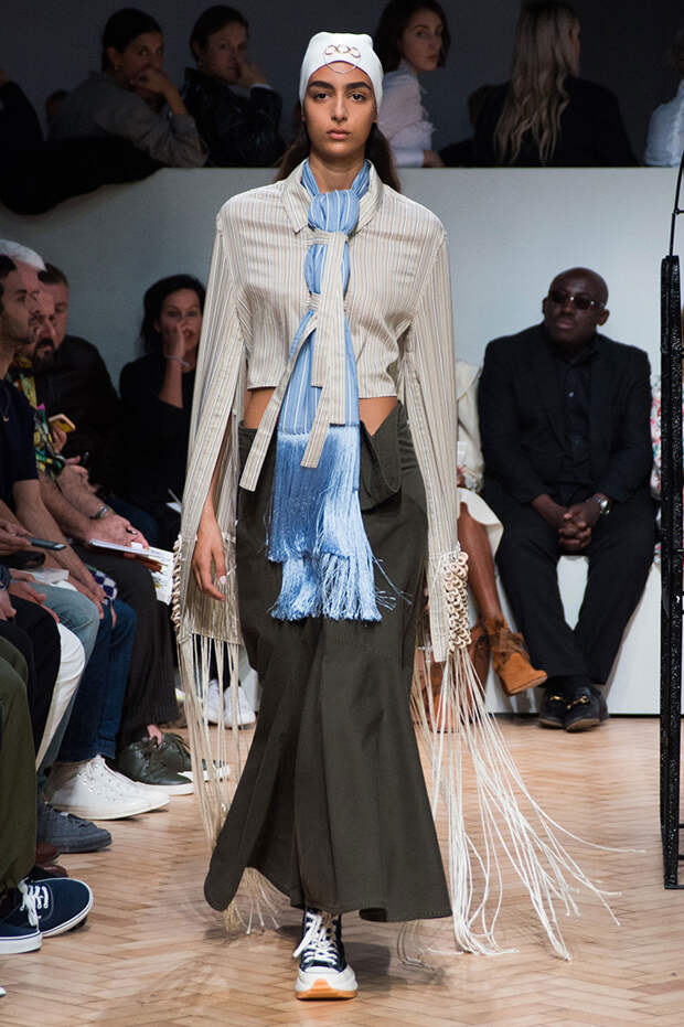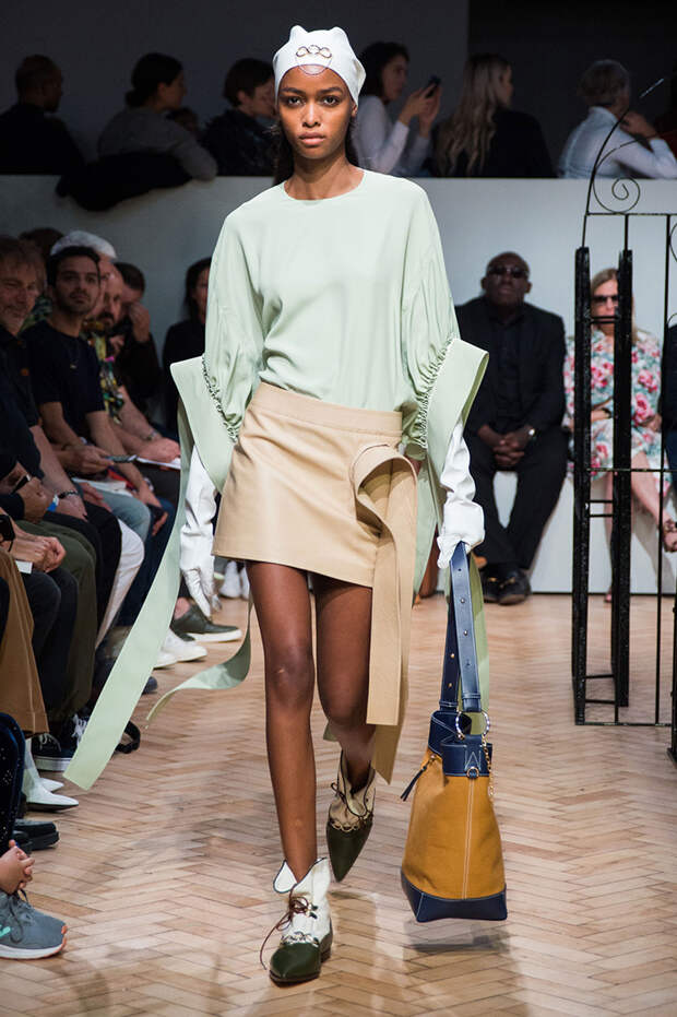 Ирландца Джонатана Андерсона сложно сравнить с его коллегами по цеху, а в одежде именного бренда — найти явные тенденции. Держится он особняком и в том, чтобы интерпретировать какие-либо эпохи. В своих коллекциях Андерсон деконструирует привычные фасоны, пытаясь найти совершенно новые формы одежды. Так, 15 сентября в рамках Недели моды в Лондоне он показал блузки с объемными рукавами и огромными, свищающими в виде лент манжетами.