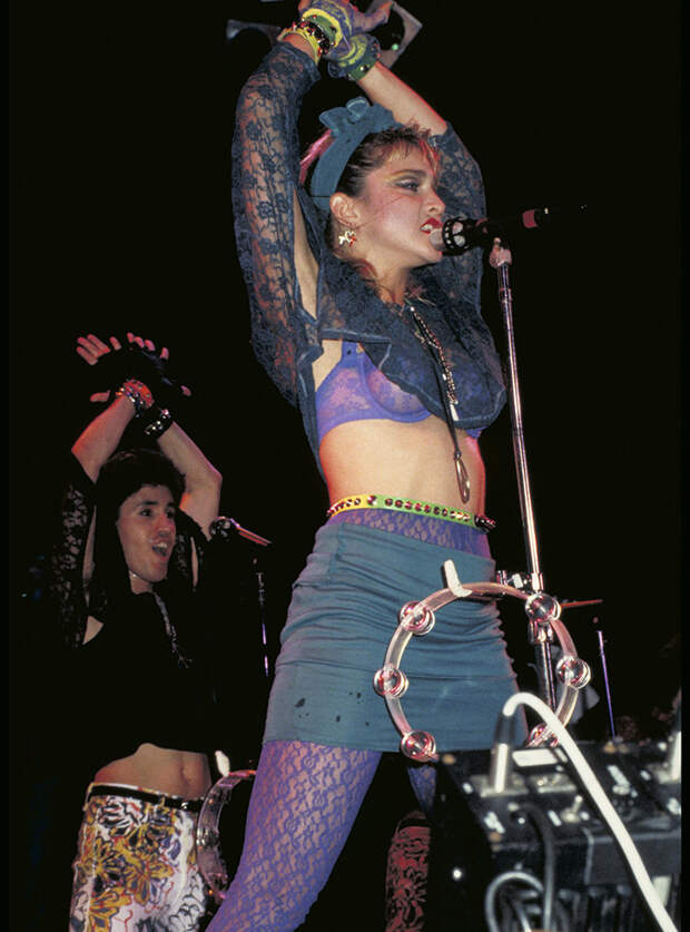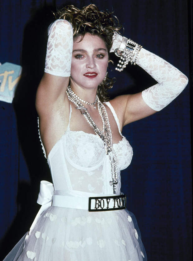 Среди них - ее появление на первой церемонии вручения MTV Music Awards в 1984 году в полупрозрачном кружевном "свадебном" платье с широким ремнем. Провокационная надпись на пряжке Boy Toy укрепила ее скандальный имидж, спровоцировавший настоящий взрыв в общественном сознании: короткая стрижка, отросшие у корней выжженные волосы, широкие темные брови, фиолетовые тени и серые губы.