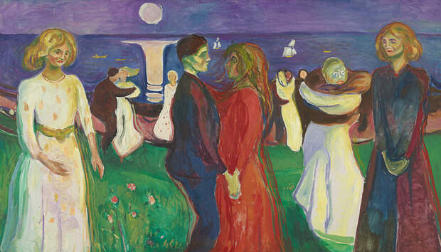 Магия его картин – в особой оптике, через которую этот бесстрашный художник обратился не только к закату, но и к темам, которые раньше в искусстве игнорировали или смотрели на них более позитивно. «Танец жизни», центральная картина большого цикла «Фриз жизни» и сердцевина экспозиции в Третьяковке, – это сценка плясок в полнолуние на берегу залива. Но, приглядевшись, мы понимаем, что на картине в разных позах – одна и та же женщина: слева она – девушка в белом платье, полная надежд, дальше – страстный танец, а справа – понурая, одинокая дама в черном. Или «Амур и Психея» – без всякой слащавости, присущей в искусстве героям-любовникам из античного мифа: просто голые мужчина и женщина, испуганно оглядывающие друг друга. Драма женского вероломства (Психея нарушила запрет Амура – рассмотрела своего любовника спящим, чтобы убедиться в его привлекательности или в противном случае убить) здесь нагнетается энергичными вертикальными мазками и приобретает вневременной размах.