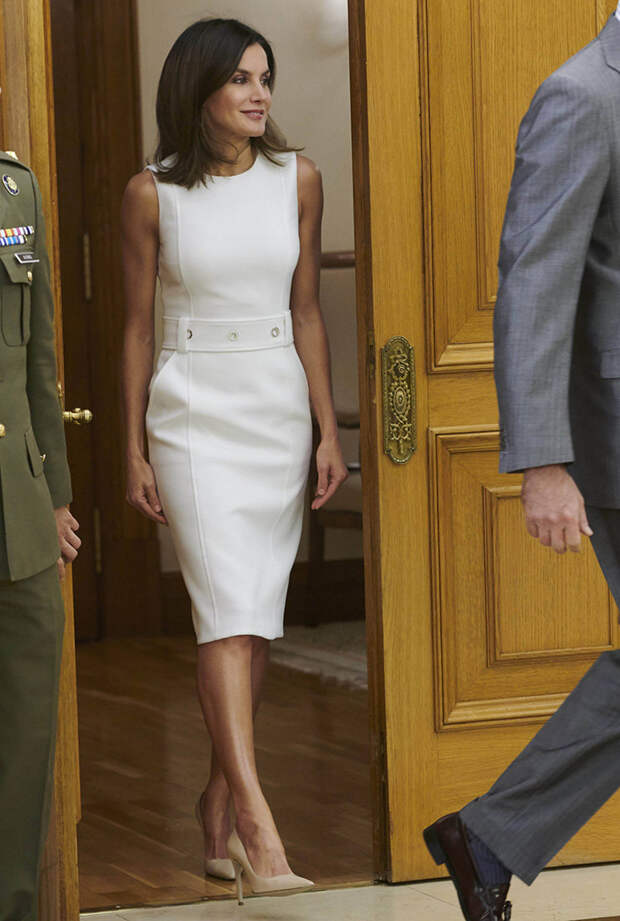 Королева Испании подает правильный пример всем женщинам: своими формами нужно гордиться, их нужно подчеркивать. Платья-футляры, узкие юбки и пальто с юбками А-силуэта вам в помощь.