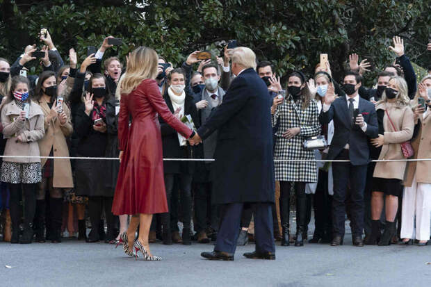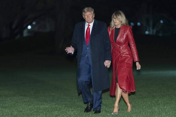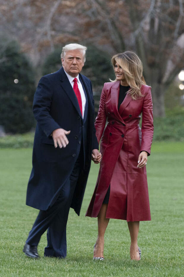 Мелания Трамп — не новичок в мире моды. Как бывшая модель, она знает, как выгодно преподнести свою внешность. Этот навык она недавно продемонстрировала в очередной раз, появившись на одном из официальных мероприятий вместе со своим супругом Дональдом Трампом. Для одного из последних выходов в статусе первой леди (напомним: ее супруг недавно проиграл президентские выборы Джо Байдену) она выбрала красный кожаный плащ с плиссировкой Alexander McQueen и лодочки с зебровым принтом Manolo Blanhik.
