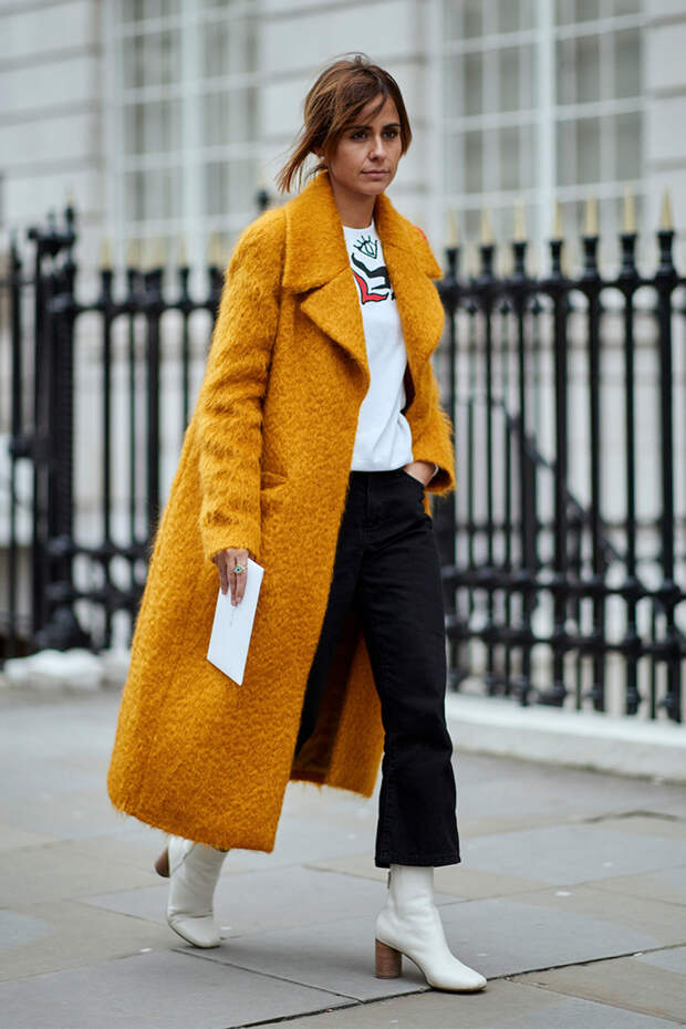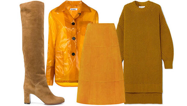 Показы осень-зима 2018-19 отличились сразу несколькими трендовыми цветами: красным (что, впрочем, не новость), кобальтовым и горчичным. Последнего особенно много было в Нью-Йорке: Bottega Veneta представили женственные бархатные платья и шелковые пижамы, Кристоф Лемер для Hermes создал верхнюю одежду, юбки и кофты из кожи горчичного оттенка, а Алессандро Дель Аква разбавил им клетчатый принт.