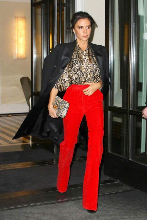 На публике наши герои не скрывали нежных чувств: экс-спортсмен крепко держал жену за руку и всячески опекал ее, ограждая от местных папарацци. А сама Вики эффектно следовала за супругом в алых брюках, блузке со змеиным принтом и клатчем в тон и пальто-смокинге, небрежно накинутом на плечи.