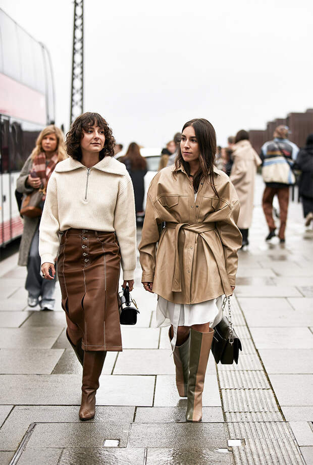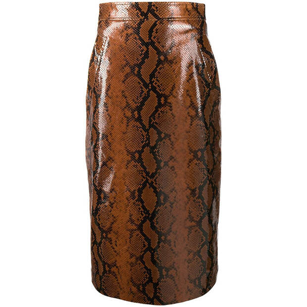 С искусственной кожей мы знакомы давно, и она уже не кажется нам сверхинтересной. Однако глянцевая и «дорогая» фактура юбки всегда способна выдать в вас модницу – даже в сочетании с незамысловатой рубашкой. Смело берите на вооружение черные юбки из эко-кожи, если выбираете универсальный вариант на все случаи жизни. Отыскать подобные можно у Bernadette и Materiel. Для тех, кто не прочь выделиться, – варианты в коричневой гамме с модными накладными карманами от MSGM и Petar Petrov. Сочетайте их с казаками и фетровой шляпой, чтобы поддержать богемный шик аутфита. Не забываем: животный принт по-прежнему не сдает позиций, поэтому юбка с «пантерой» точно не будет лишней в вашем гардеробе. К тому же сочетать ее можно по-разному: с шоколадной блузкой с объемными рукавами или, скажем, уютной толстовкой – выбирайте по настроению.