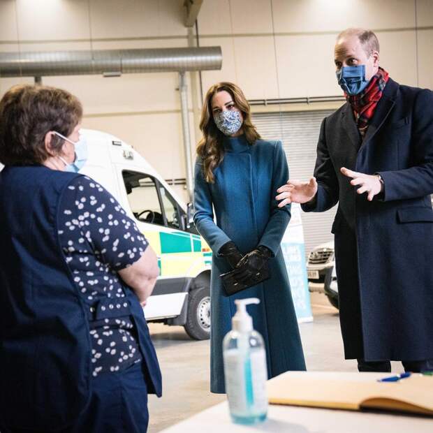 На этот раз будущая королева дополнила свой выход черными сапогами Ralph Lauren на шпильке, кожаными перчатками в тон и лаконичным клатчем Grace Han. Герцогиня не стала игнорировать и нормы безопасности: нюдовая защитная маска с романтичным цветочным принтом стала едва ли не главным аксессуаром Кэтрин, если не считать ее широкую улыбку.
