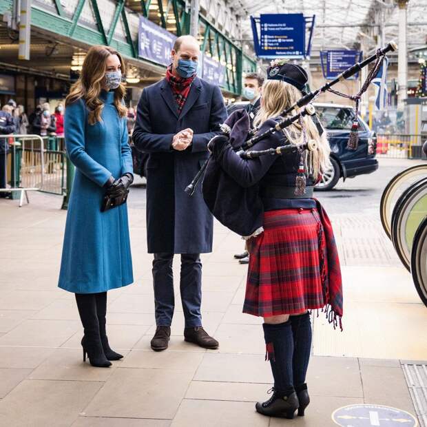 Кэтрин и принц Уильям приехали в Эдинбург: и этот пункт стал первой их остановкой во время благодарственного тура. Погода выдалась особенно прохладной, и будущая королева была готова к такому повороту событий. Кейт приглянулась васильковое пальто Catherine Walker & Co, одного из ее любимых брендов. Красивый оттенок, элегантный вырез и облегающий силуэт - выход герцогини был безупречным. Это пальто хранится в ее гардеробе как минимум два года: мы уже видели Кэтрин в таком образе в 2018 году в Норвегии, правда на тот момент на манжетах красовался мех. Бережливая герцогиня с легкостью распрощалась с этой деталью - и новый образ уже готов.
