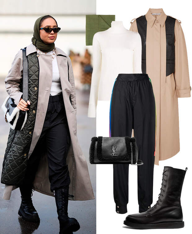 Водолазка JIL SANDER, 25 400 руб.; брюки KHRISJOY, 24 947 руб.; тренч ALEXANDER WANG, 43 226 руб.; палток HOLLAND & HOLLAND, 33 809 руб.; сумка SAINT LAURENT, 165 464 руб.; ботинки THE ROW, 93 976 руб.