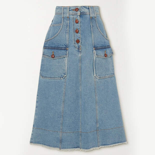 Помимо того, что такая вещь актуальна прямо здесь и сейчас, это еще и крайне выгодная инвестиция - будущей осенью она все еще будет в тренде и станет отличной альтернативой набившим оскомину плиссированым миди. В оставшиеся летние дни вы можете надеть ее с простым топом, белой “мужской” сорочкой или актуальной рубашкой-поло для прогулки по городу или похода в бар с подругой. С наступлением же холодов она будет отлично “рифмоваться” с высокими сапогами с широким голенищем и оверсайз-водолазкой или изящным кардиганом в духе героинь фильмов Хичкока. Осталось только выбрать, какая опция вам ближе: интернет-магазины предлагают огромный выбор. Вариант с легкой драпировкой в оттенке индиго Valentino универсален в сочетании и уместен даже для похода в театр или на работу в пятницу, асимметричная юбка в технике пэчворк Frame в комплекте с трендовым коротким жилетом понравится фанатам стиля ранних нулевых, а миди из светлого денима с рядом деревянных пуговиц поможет обыграть лук в духе по-прежнему модных 70-х.