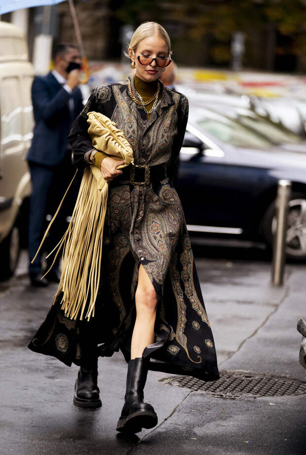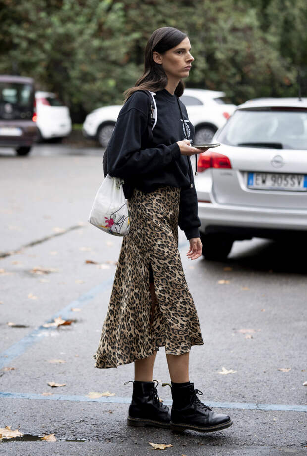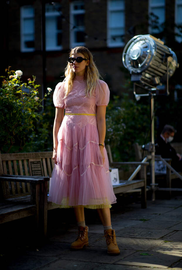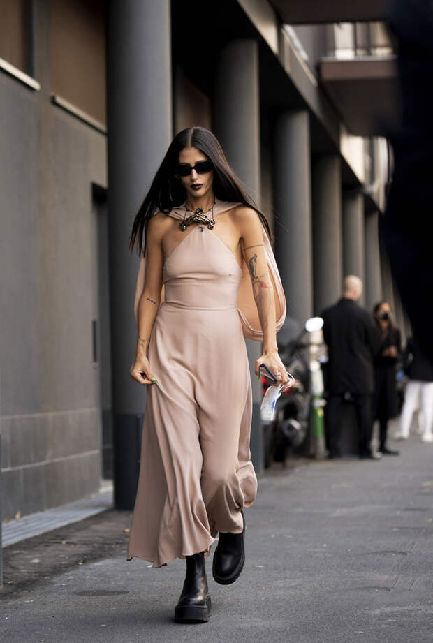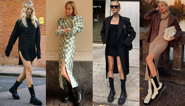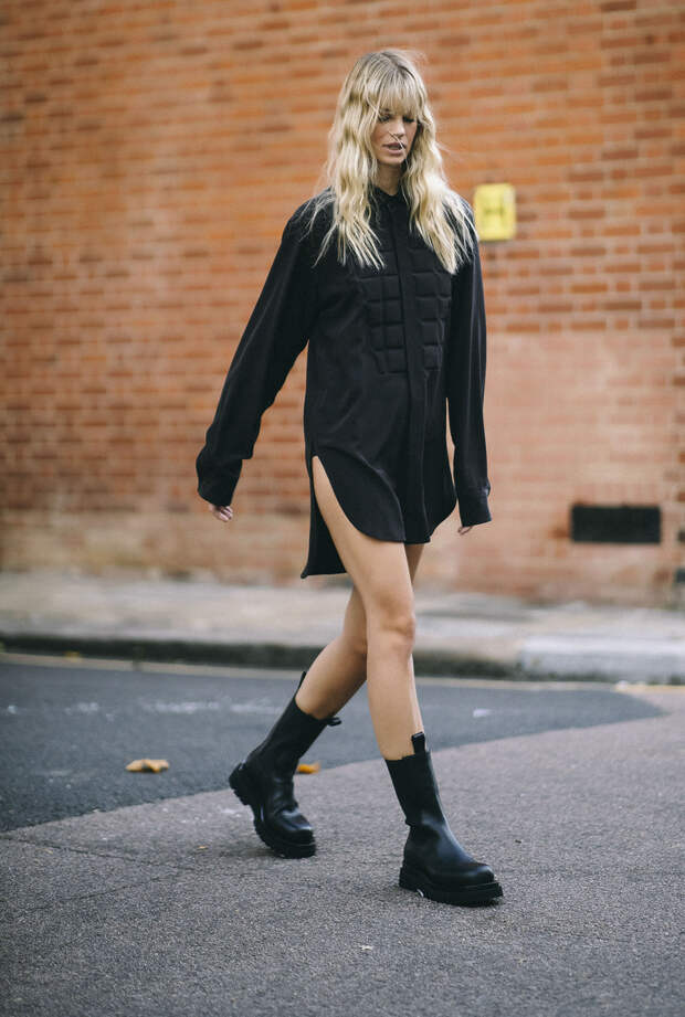 Если вы все еще сомневаетесь в этом, то мы готовы доказать вам это наглядно. Мы собрали целых 20 примеров того, как носить ботинки с платьем осенью 2020. Чтобы вы уже точно не остерегались досадных модных faux pas, мы сделали подборку стильных образов от главных фэшиониста мира. И они на своем личном примере доказывают, что именно высокие массивные ботинки — лучшая пара для женственного платья. Ну а чтобы гарантированно все сделать правильно, мы советуем при подборе образа держать в голове несколько простых правил. Во-первых, чем объемнее платье, тем больше и грубее должны быть ботинки. И, напротив, с чем-то облегающим гораздо лучше будет смотреться обувь, которая сидит подобно "второй коже". Красота, как известно — вопрос пропорций. А значит, чтобы лук получился действительно гармоничным, в первую очередь в голове нужно держать соотношение форм и размеров всех вещей. Так что к оверсайз-платьям мы выбираем челси или "мартинсы" с широким голенищем на массивной подошве.