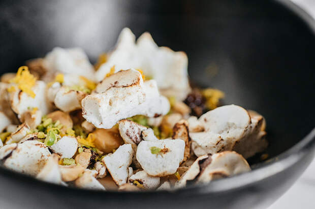 Ресторан, кстати, уже вовсю готовится к Новому году. Прислушаться к их предложению имеет смысл: потрясающий вид и оригинальную программу банкета здесь планируют совместить с традиционной подготовкой к бою Курантов с салатами и застольем. Однако едва ли дома у вас получится организовать нечто подобное: среди позиций праздничного меню – эклеры с томлеными телячьими щечками, салат с томатами, шпинатом и крабом с апельсиново-имбирной заправкой, оливье с копчеными перепелами и икрой форели, филе стерляди с муссом из подкопченной цветной капусты и соусом из раков, котлета из косули и теленка с соусом из трюфеля и маринованной облепихой, сливовый пирог с мороженным из кардамона и многое другое.