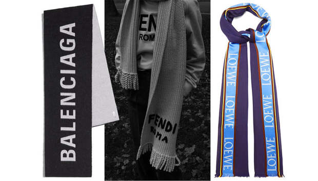 Если однотонные шарфы наскучили, а клетчатые стали привычной «классикой», настало время экспериментов. В списке трендов - футбольные шарфы с надписями, точнее "околофутбольные". Потому что вместо названия любимый команды - название любимого модного Дома. Надеть шарф с кричащим логотипом – это не только отличный способ разнообразить зимний аутфит ярким аксессуаром, но и заявить о своих модных предпочтениях.