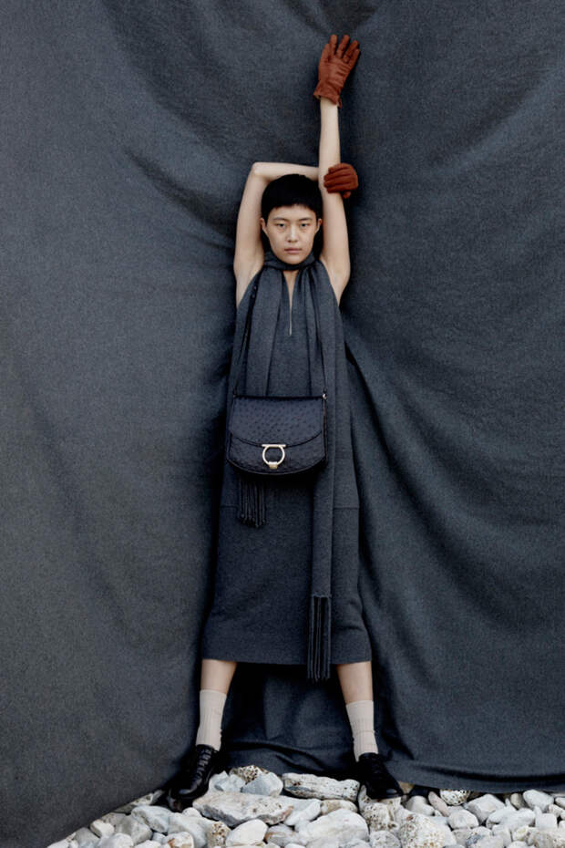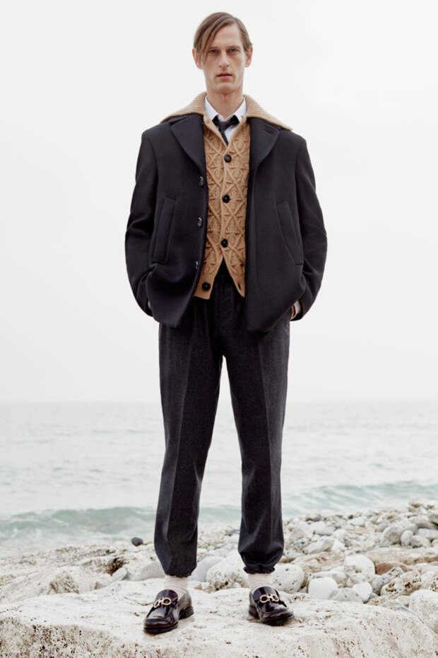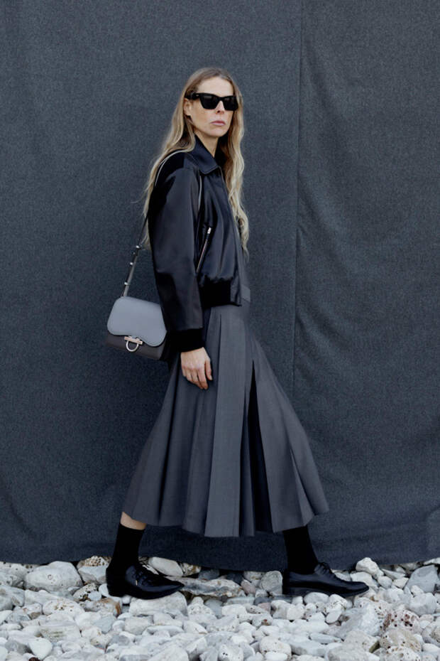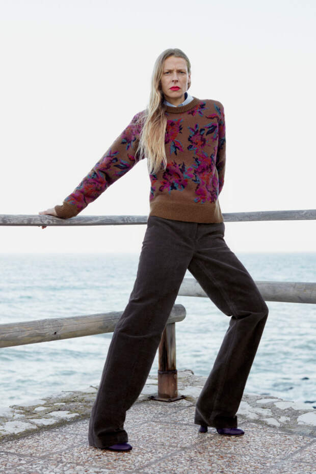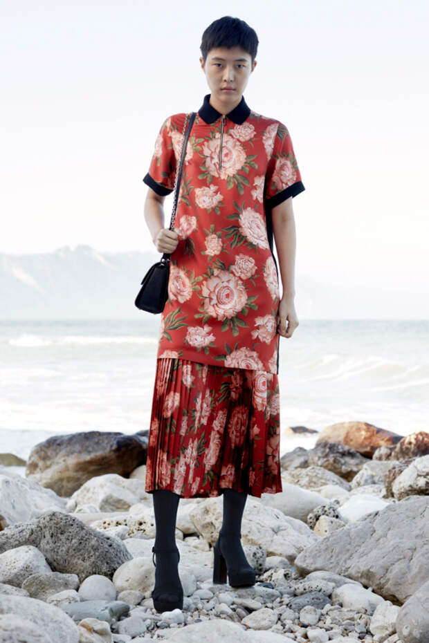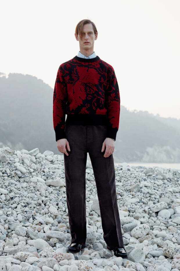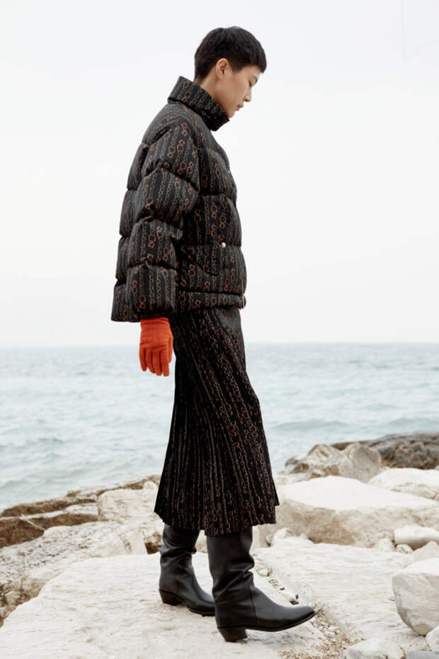 В лукбуке Pre-Fall - 2019, фоном в котором служит холодный и пустой пейзаж, безупречность каждой детали и продуманность образов видны отчетливо. Здесь и многослойный серый комплект из шелкового бомбера и шерстяной юбки, дополненный короткими носками и остроносыми мужскими туфлями, и "бабушкины" свитеры со свободными брюками, и платья с принтом в виде садовых цветов, и пушистые шубы, и пуховик цвета матчи.