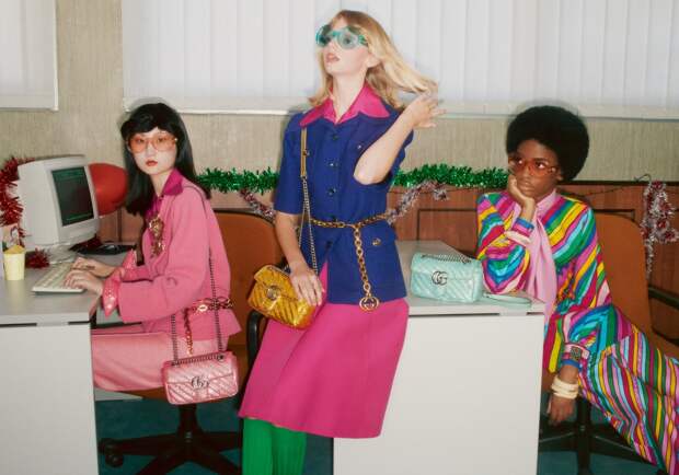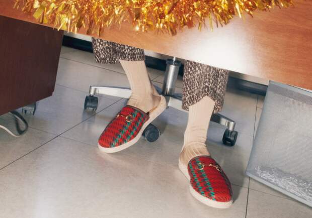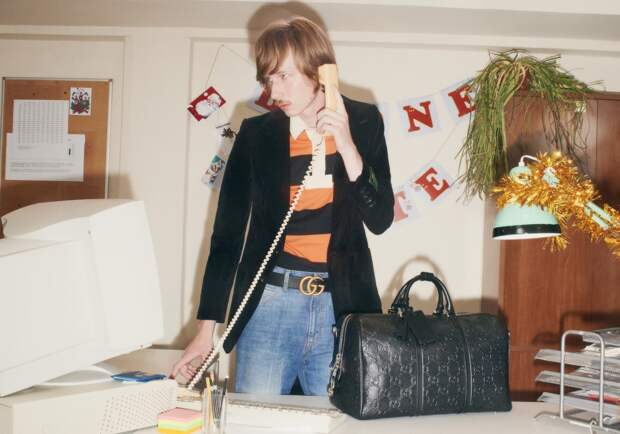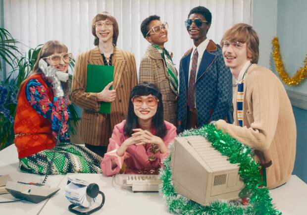 Готовы поспорить, что со всеми тяготами последнего времени вы очень сильно соскучились по атмосфере праздника. Алессандро Микеле тоже: поэтому Gucci уже выпустили новую праздничную рекламную кампанию. И она вдохновлена новогодними корпоративами 90-х! Между скучными серыми рядами офисных столов, компьютеров и копировальных машин развешаны гирлянды, работники уже вносят в здание большую елку, а заветная дата в календаре обведена красным.