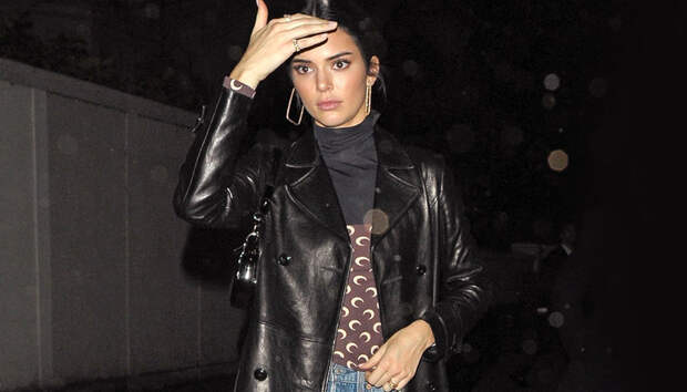 Она надела джинсы-трубы из светлого денима, водолазку с принтом в виде полумесяцев, двухцветные ботильоны с длинным носом и кожаный плащ до пят. К слову, такая верхняя одежда в последнее время особенно популярна: подобные плащи буквально не снимают Белла Хадид и Кайя Гербер. И мы отлично их понимаем!