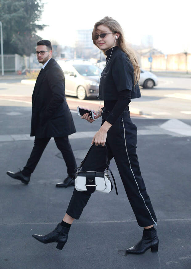 С конца прошлого года сестры Хадид и их лучшая подруга Кендалл Дженнер просто не расстаются с сумкой-багетом. Любимый аксессуар девушки сочетают с любой одеждой: вечерними платьями и спортивными костюмами, трикотажными комплектами и "офисными" жакетами. Образы звездных фэшиониста - прямое доказательство тому, что клатч с аппетитным названием способен стать просто незаменимым в повседневном гардеробе.