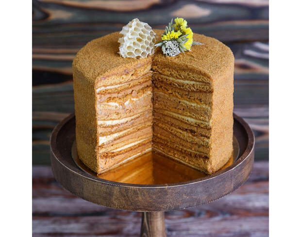 В «Любовь и сладости» подготовили набор из 6 пирожных-мини-тортиков «Медовик», торт «Медовик» с карамельно-ореховым и сметанным кремами и декором из медовых сот или малины, а также 2-х килограммовый торт «Медовик» с малиной, покрытый кремом и шоколадом.