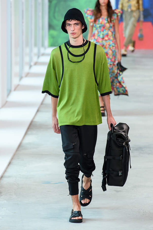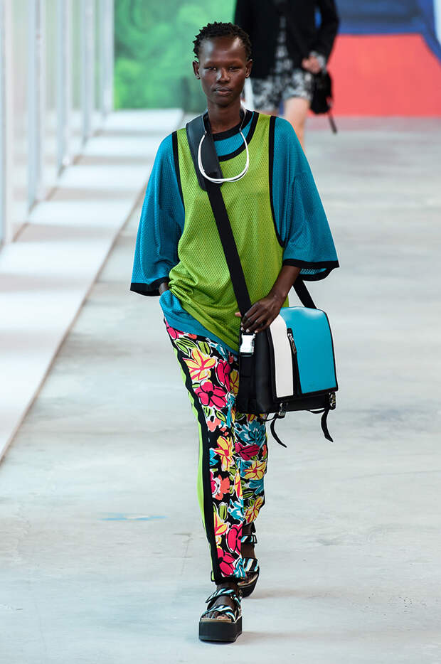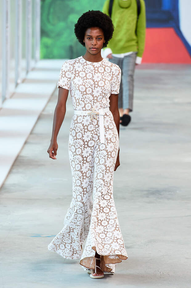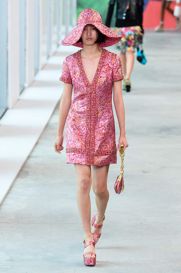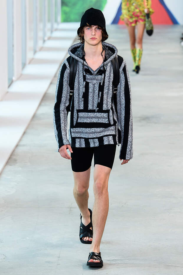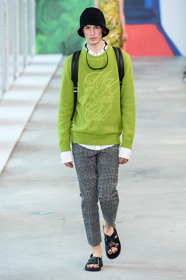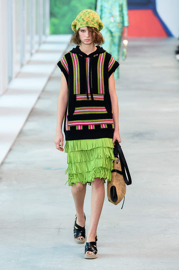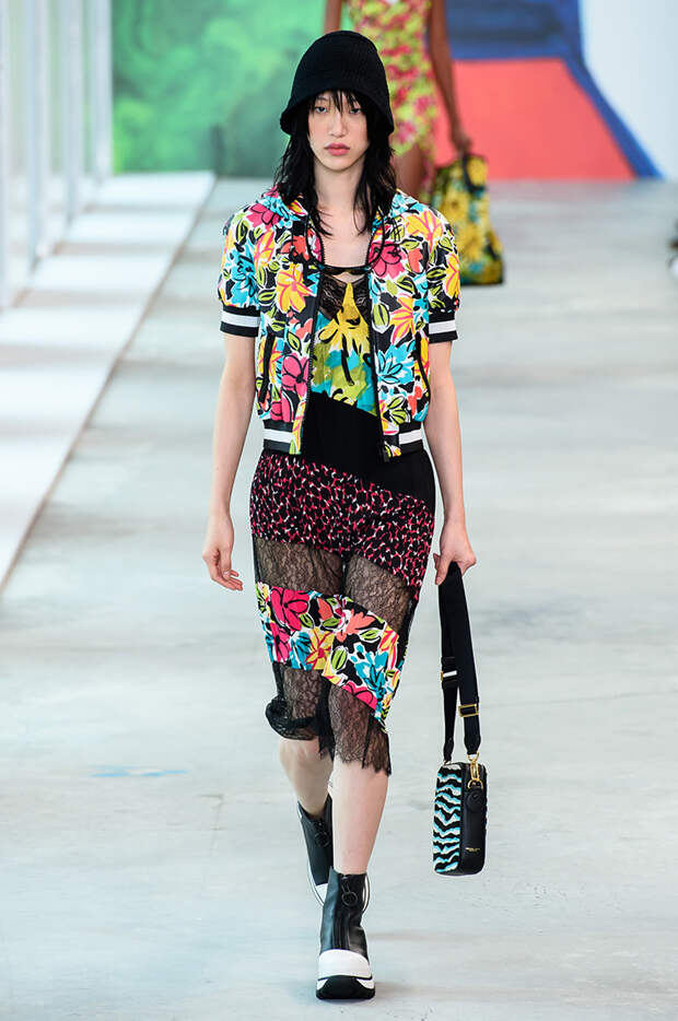 Как и красноречивый вид из панорамных окон на пирс с пришвартованными кораблями.Показ прошел в пространстве, украшенном картинами современной художницы Кристины Зимпель. На подиуме появлялись девушки, облаченные в пышные юбки и свободные рубашки, разрисованные цветами словно от руки, широкополые цветные шляпы и соблазнительные топы с теми же рисунками идеально подойдут девушкам, желающим будущим летом громко заявить о себе и не потеряться в толпе. А для любительниц пляжного отдыха здесь есть купальники, туники, соломенные сумки, солнечные очки и... плавательные резиновые шапочки. В первом блоке коллекции преобладают салатовый, оранжевый, ярко-розовый цвета. И, конечно, снова желтый: определенно, он весной и летом 2019 года точно будет в тренде. Как и вязанные вещи, будто найденные в бабушкином комоде, но переделанные на современный лад. Такие же можно увидеть не только у Корса, но и у многих других дизайнеров, показавших свои творения на Неделе. Во втором блоке коллекции Майкла — сексуальные наряды в лучших традициях бренда. Черные летящие платья и юбки с провокационными разрезами легко составляв конкуренцию вечерним одеяниям от Carolina Errera и Oscar De La Renta, которые мы успели оценить ранее.