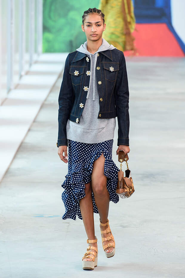 Одним из последних знаковых показов на Неделе моды в Нью-Йорке стало шоу Michael Kors. 12 сентября дизайнер представил новую, яркую во всех смыслах коллекцию, напоминающую о солнечных странах, жарких пляжах, лучших отелях и курортных романах. Словом, пропитанную духом путешествий и приключений. Музыкальное сопровождение говорило само за себя: композиции Itsy Bitsy petit bikini певицы Далиды и Good Vibrations группы Beach Boys настраивали всех гостей на правильный лад.