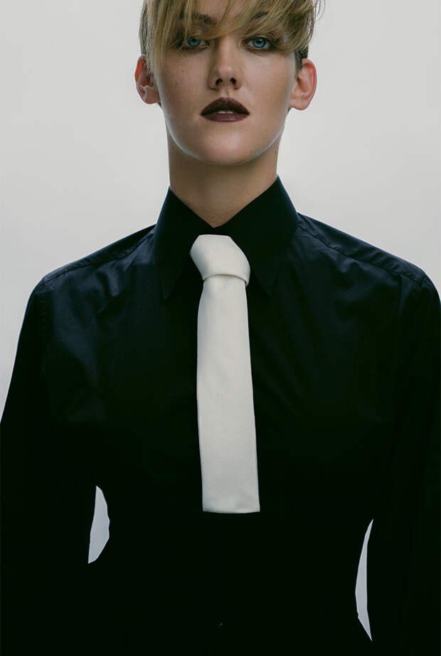 БЛУЗКА, ГАЛСТУК И БРЮКИ, Dolce & Gabbana. УВЛАЖНЯЮЩЕЕ СРЕДСТВО С ТОНОМ MILLENNIALSKIN SPF 30, 7; ЖИДКИЙ БРОНЗЕР SOLAR GLOW, 1; КОНСИЛЕР MILLENNIALSKIN ON-THE-GLOW, 3; ТЕНИ-КАРАНДАШ ДЛЯ ГЛАЗ INTENSEYES, 4; ТУШЬ ДЛЯ РЕСНИЦ PASSIONEYES, 1; КАРАНДАШ ДЛЯ ГУБ, 4; БЛЕСК ДЛЯ ГУБ С ЭФФЕКТОМ ОБЪЕМА ROYAL GLOSS, PRECIOUS DAHLIA; НАБОР ТЕНЕЙ И АКСЕССУАРОВ ДЛЯ КОРРЕКЦИИ БРОВЕЙ, 1. ВСЕ DOLCE & GABBANA BEAUTY