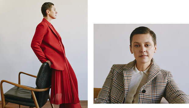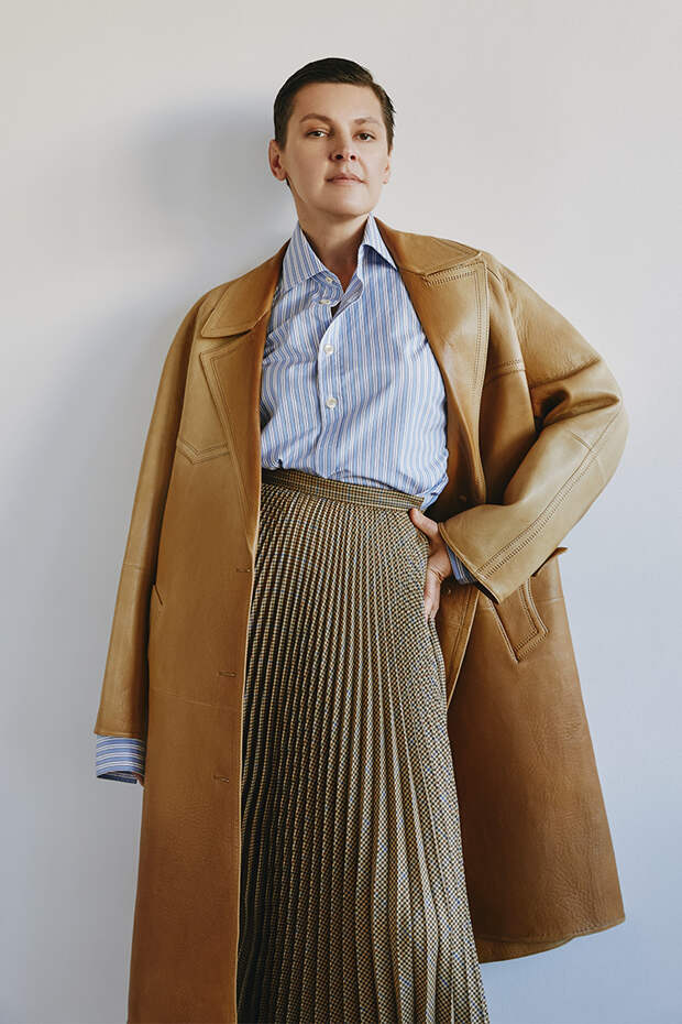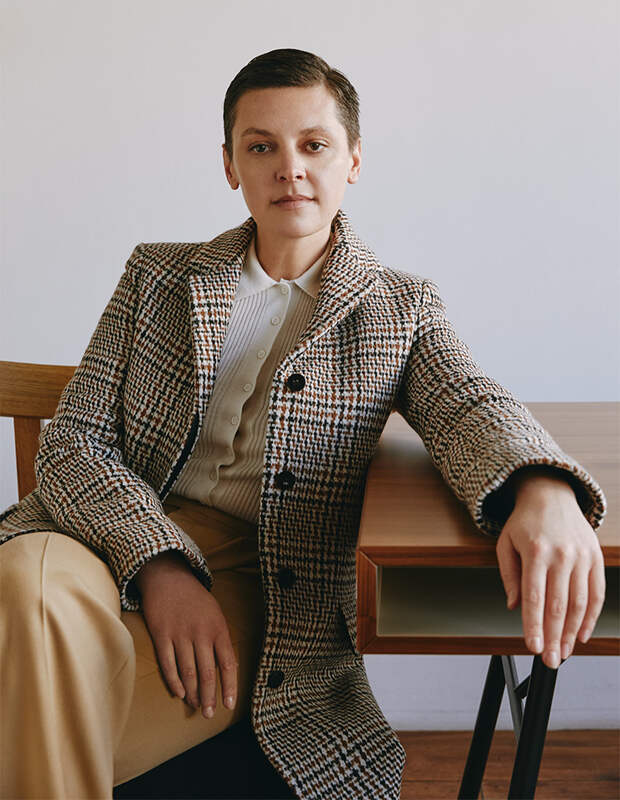 Пальто, Jil Sander; Блузка, Uniqlo; Брюки, Gucci
