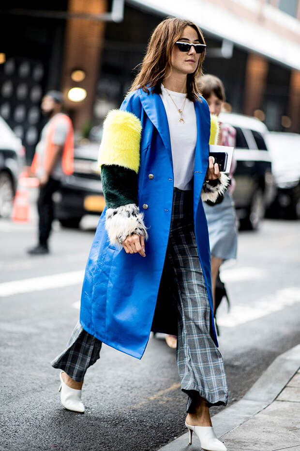 Во-первых, они не видят причин отказываться от ярких вещей — коротких розовых платьев, сарафанов с анималистичным паттерном, принтованных комбинезонов и костюмов, неоновых босоножек и прочего. Во-вторых, чем экспериментальнее комплекты, тем интереснее выглядит собственный гардероб: попробуйте добавить к простым джинсам длинные белые сапоги, а к однотонному платью — яркую шубу; надеть кроп-топ со строгим костюмом или принтованным комплектом из куртки и юбки, а разноцветное пальто — с клетчатыми брюками и футболкой с рисунком. Даже если вы не стремитесь попасть в хронику стритстайла, ощущение новизны и приподнятое настроение никто не отменяет.
