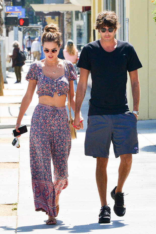 Жителям Лос-Анджелеса можно носить летние фестивальные наряды хоть круглый год: пижамные брюки, кроп-топ и мюли – выбор бывшего "ангела" Victoria's Secret. Легкий костюм с пестрым принтом Алессандра нашла у бренда Spell & The Gypsy Collective. Мы, к сожалению, сможем надеть такой только через год.
