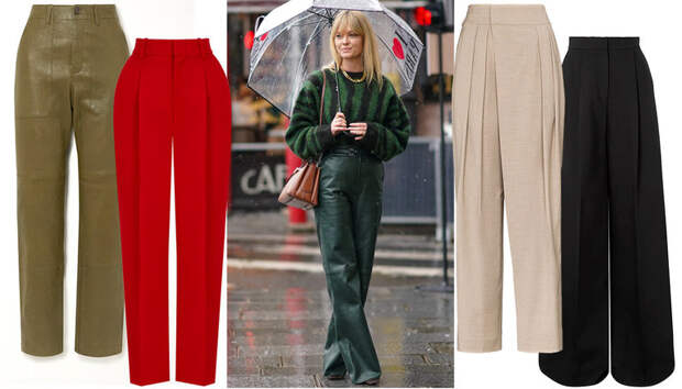 Какие же брюки лучше выбрать? Самыми трендовыми по-прежнему являются модели с защипами и складками на поясе. Они выглядят в меру маскулинно, но акцентированная талия при этом добавляет им нужную ноту женственности, не уводя ваш образ в полную агендерность. На втором месте — самые простые широкие брюки. Палаццо, "пижамные", объемные джоггеры — чем шире, тем лучше. Ткани и фактуры допускаются любые: скромная шерсть, роскошный кашемир, нарядный бархат, ультрамодная кожа. По цветам ограничений никаких нет. Но однозначно самым трендовым остается красный — без всякого преувеличения, настоящий оттенок сезона. Имеет смысл также обратить внимание на классический принт "гусиная лапка" — он моментально сделает ваш лук выверенным и аристократичным (рассмотрите для себя брюки Brunello Cuccinelli). Универсальный и практичный черный тоже не исчезает с модных радаров — в нем выполнено множество стильных вариантов, например, широкие брюки с защипами Alexander McQueen или бархатные палаццо Zara.