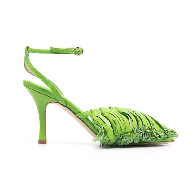 От эксцентричных меховых мюлей Bottega Veneta и Jacquemus до более утонченных шпилек со сверкающими вставками, как у нашумевших Mach & Mach и ярко-зеленых босоножек с бахромой A.W.A.K.E. Mode – мы выбрали для вас 11 эффектных пар обуви, которые вызовут желание немедленно начать строить планы на вечер и, возможно, станут поводом для судьбоносных встреч под дождем и новых знакомств.
