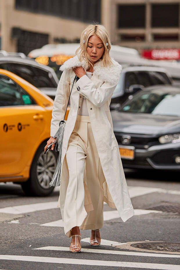 После долгих месяцев зимы так хочется сбросить теплые вещи, заменив, наконец, их летящими платьями, изящными босоножками, легкими брюками и тонкими блузами. Но с природой не поспоришь: раньше апреля ждать оттепели точно не стоит. А потому советуем искать компромиссы, как это делают звезды нью-йоркского стритстайла.