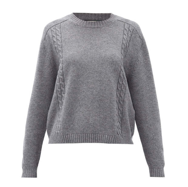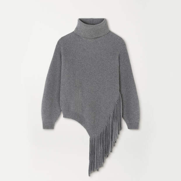 Чтобы серый свитер смотрелся эффектно, выбирайте структурные модели - с вязкой косами, объемным высоким горлом - или интересными деталями: воротником поло, модной бахромой, как у Stella McCartney, разрезами, как у Khaite. Такие модели можно носить с романтичными платьми-комбинациями, кожаными брюками и юбками, базовыми широкими джинсами, повязать поверх рубашки или использовать в качестве шарфа с тренчем и пальто. Серый легко миксуется с любыми оттенками: как с пастельными, так и с яркими модными цветами нового сезона: жёлтой, красной и зеленой палитрой. Опробуйте любимый прием фэшиониста - монохромный лук - и разбавьте его акцентными украшениями с яркими камнями или минималистичным жемчугом.