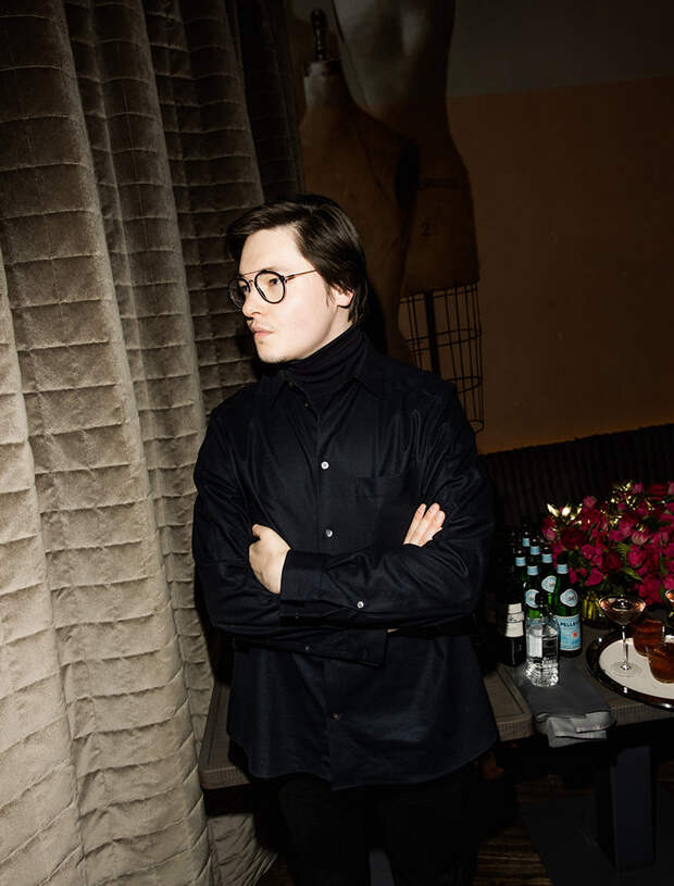 Гостей встречала зеркальная фотозона, придуманная самим дизайнером и украшенная слоганами коллекции, продолжавшими мотив граффити на представленных этим вечером моделях.