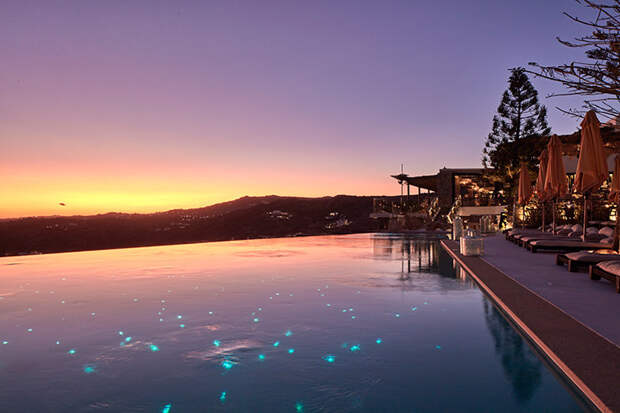 За гастрономические впечатления отвечают ресторан The Pavillion с блюдами средиземноморской кухни на современный манер (здесь же подают завтрак) и The Pool Club, расположившийся у инфинитив-бассейна, где можно насладиться аперитивом, любуясь красками Миконоса.