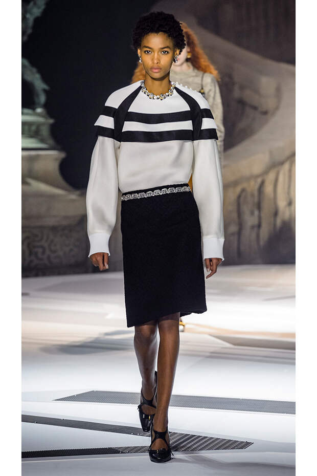 Благородный образ Грейс Келли легко перенести из 50-х в 2018-й – благо в осенне-зимних коллекциях мы увидели множество вариаций на тему костюма с юбкой. Только не забудьте надеть под миди брюки-дудочки, как у Max Mara, или высокие сапоги, как у Fendi. А классический жакет можете заменить на пальто или даже футуристическую блузку – креативный директор Louis Vuitton Николя Жескьер плохого не посоветует.