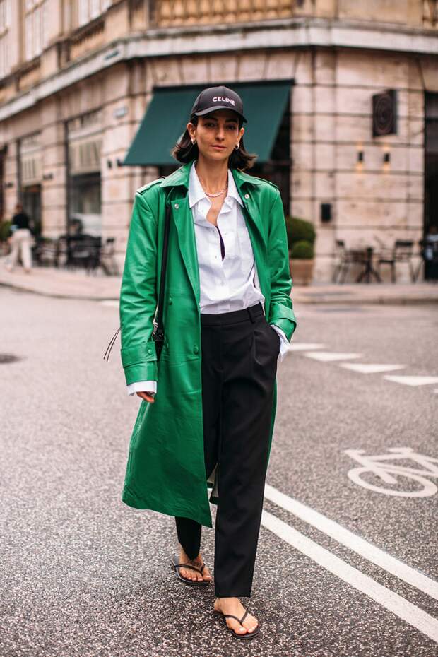 Носить кожаный тренч можно с чем угодно: платьями и юбками миди, любимыми джинсами с прямыми штанинами, брюками с высокой талией или даже шортами. Дополните образ высокими сапогами, грубыми ботинками или казаками и не забудьте завершить его стильным аксессуаром – например, кожаной панамой или яркой бейсболкой.