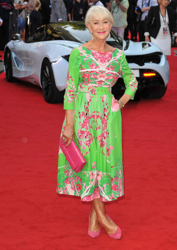 Хелен Миррен не просто выглядит потрясающе для своего возраста, она и в 73 года может стать главной и самой эффектной звездой на красной дорожке и затмить коллег, которые в два-три раза младшее ее. К примеру, вчера актриса появилась на британской премьере фильма "Форсаж: Хоббс и Шоу" в романтичном образе: зеленом платье с пышной юбкой и цветочным принтом, розовых замшевых лодочках и с клатчем в тон.
