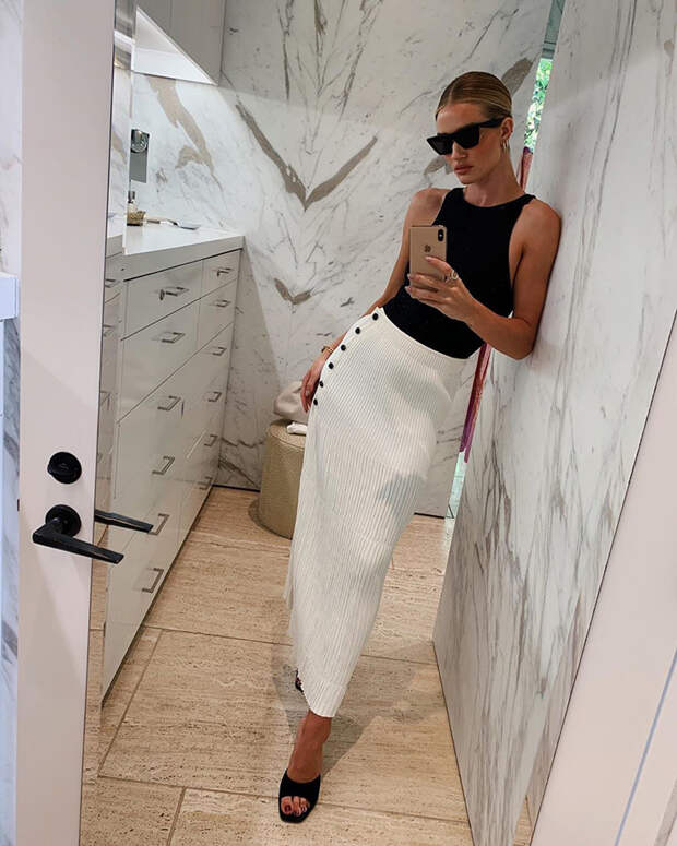Одна вещь — 6 образов: Роузи Хантингтон-Уайтли показывает, как можно обыграть базовый топ Zara