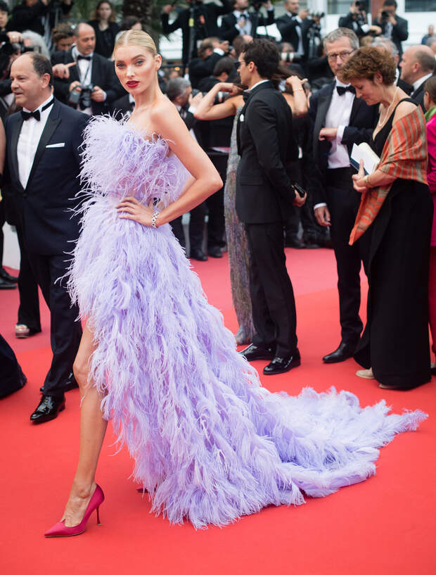 Пока режиссеры в кинозалах претендуют на призы кинофестиваля, актрисы и модели на красной дорожке соревнуются за звание иконы стиля. Одна из фавориток модной гонки в этом году – шведская модель Эльза Хоск. Вчера вечером на премьере фильма «Соблазн» она появилась в роскошном платье Alberta Ferretti, отделанном в ручную тысячей страусовых перьев лавандового цвета.